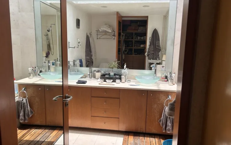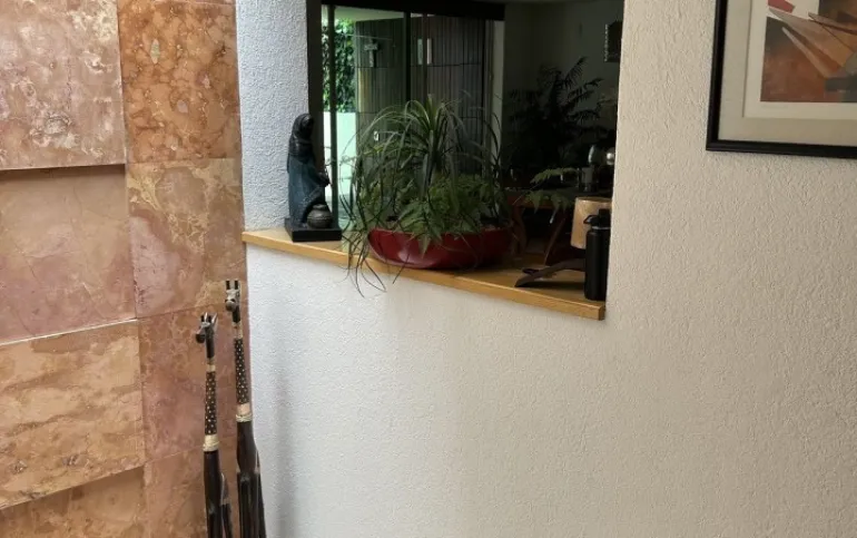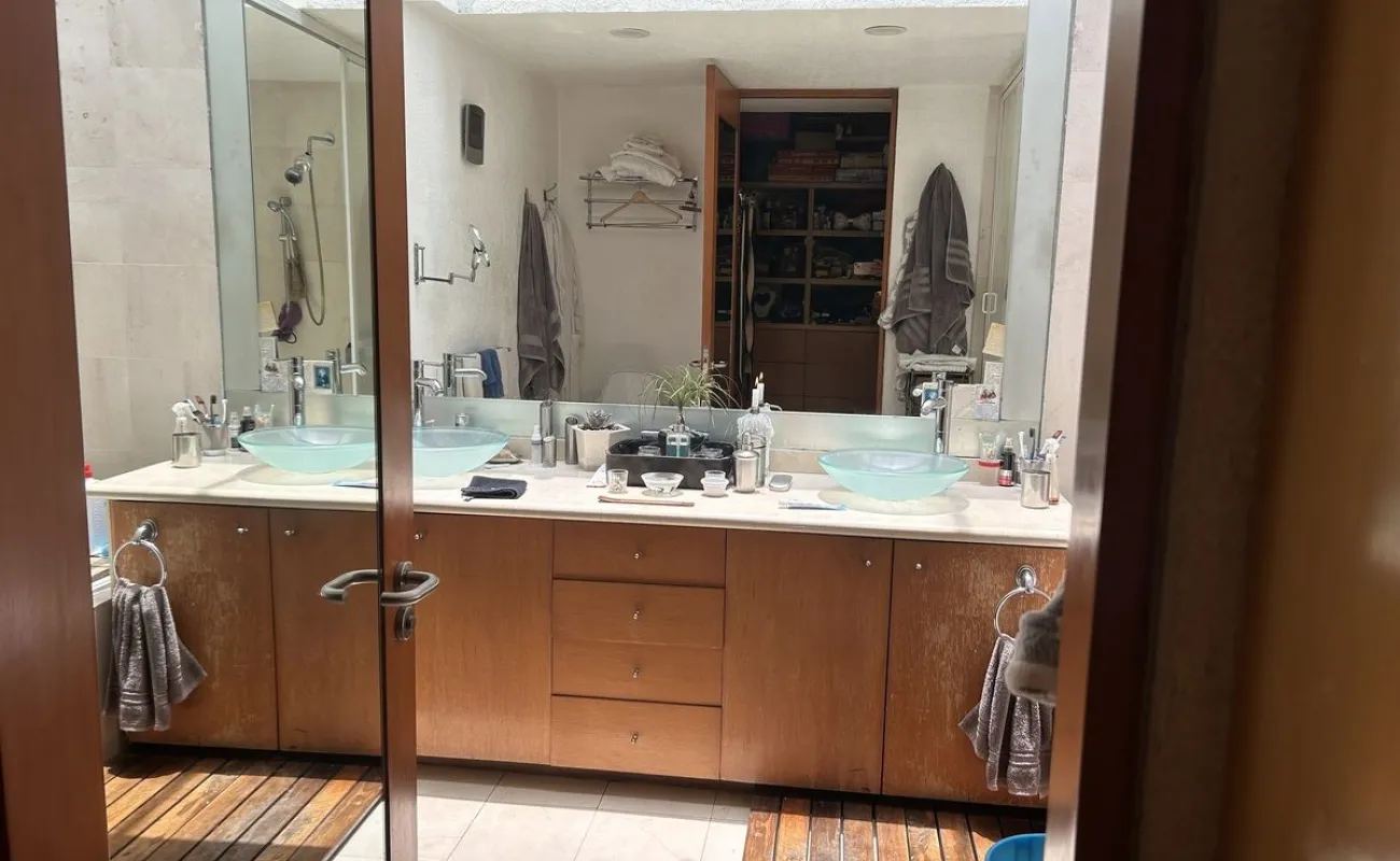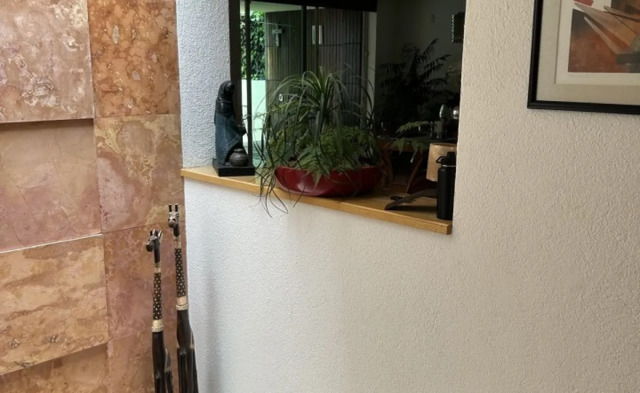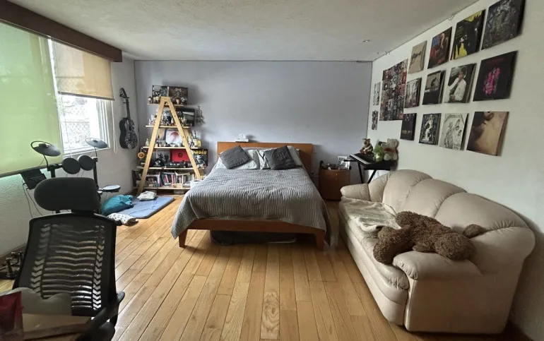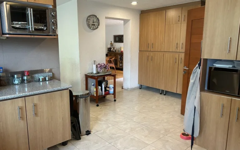 Subiendo un solo piso, se encuentra la casa una preciosa casa también de muy buen tamaño y muy iluminada, tiene sala y comedor, con piso de encino americano cocina de muy buen tamaño, con desayunador que da a un jardín hermoso