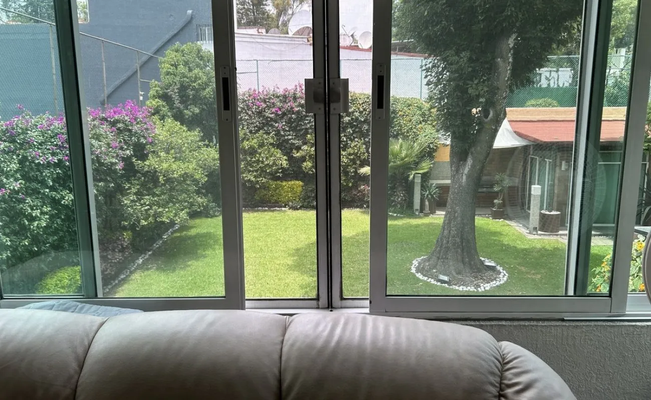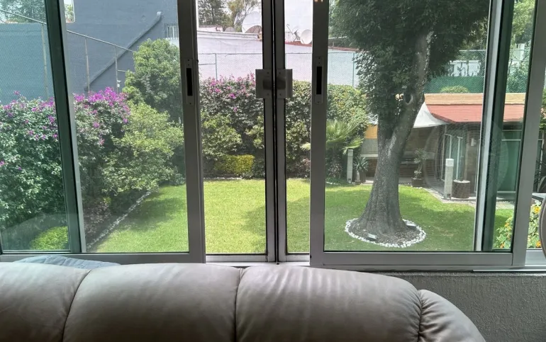 Gran Puerta de seguridad , que aísla el área de televisión con las tres recámaras, área de lavado, en el jardín tiene un cuarto que puede ser bar, oficina, área de juegos que dan a un jardín muy amplio y muy bonito
