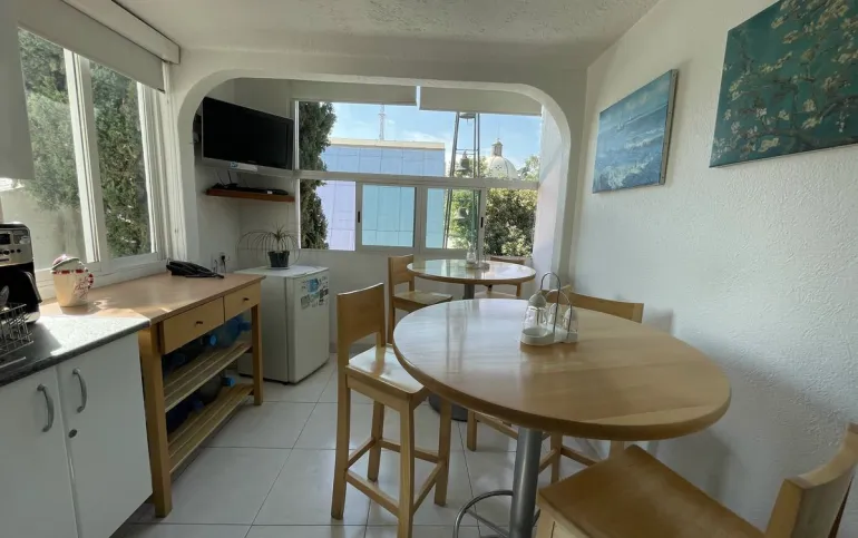 Cuenta con un atico (o recámara) con cocineta y tambien con baño completo.