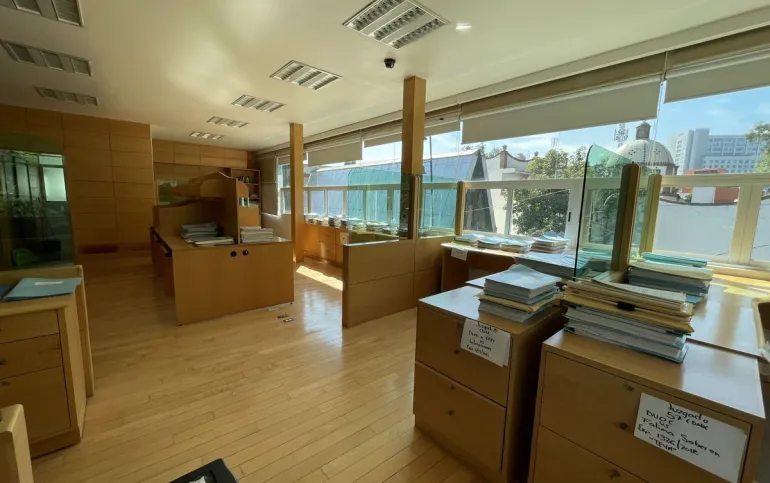 Nivel 1: recepción, sala de espera, sala de juntas, archivero, biblioteca y cubículo.