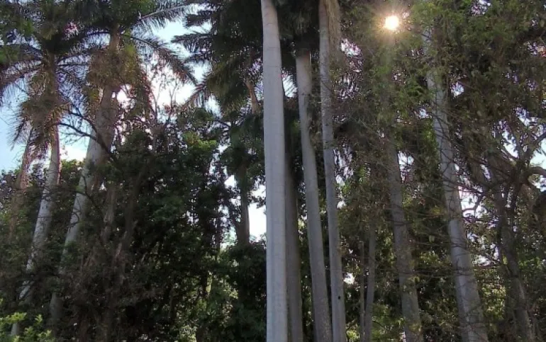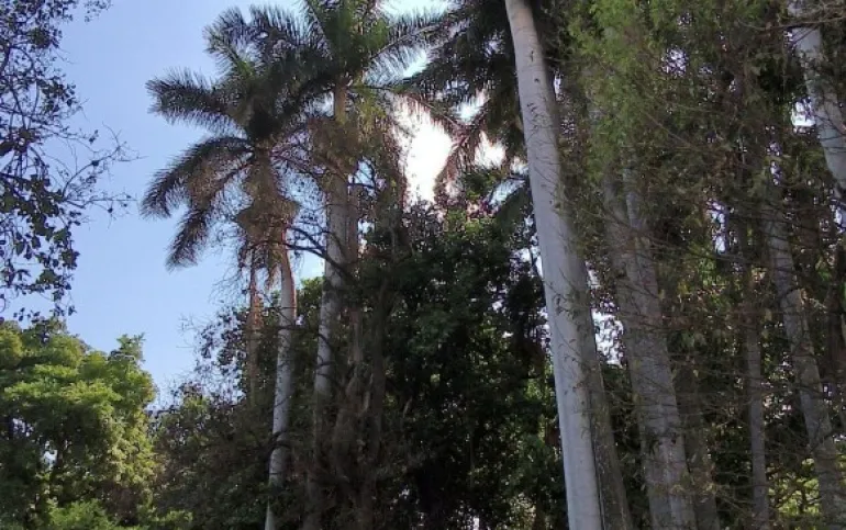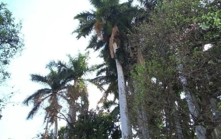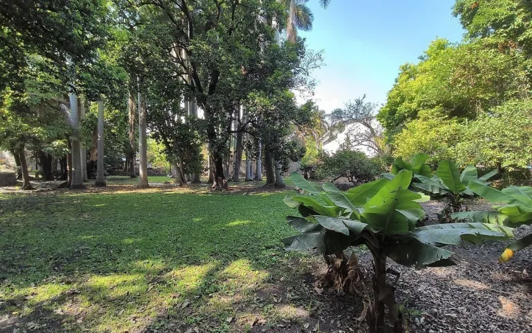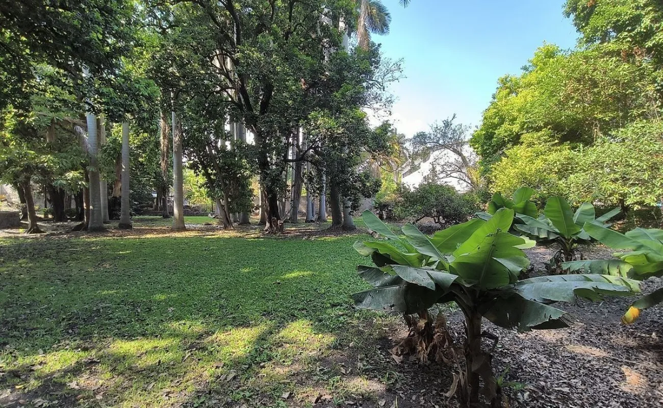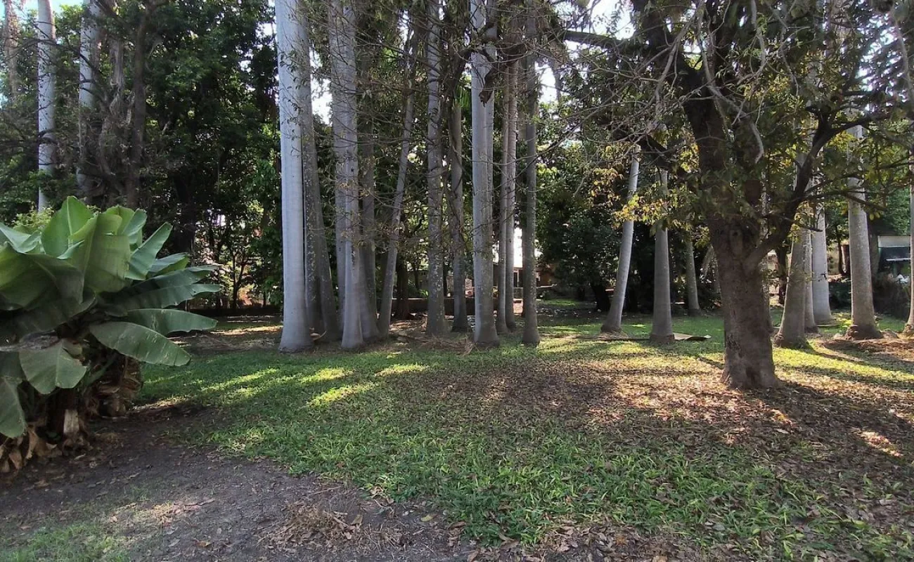 Enorme jardín dada la superficie y que la casa es pequeña, con palmas y lleno de árboles, algunos de estos frutales.