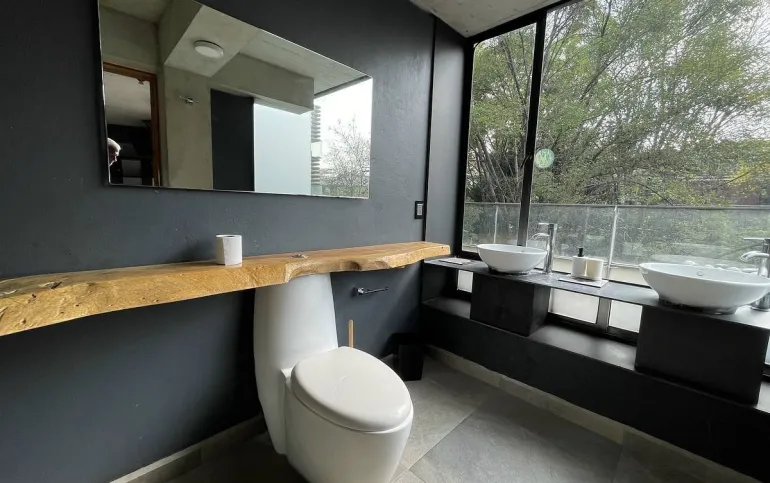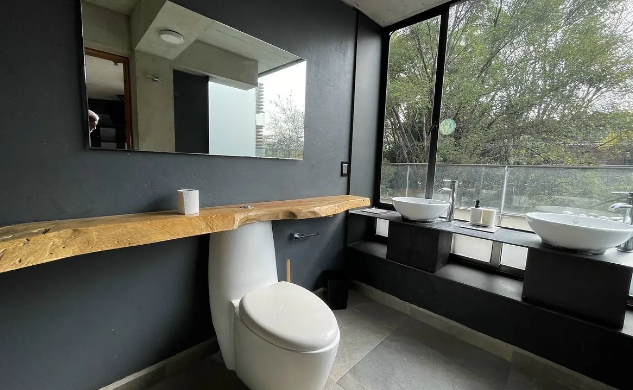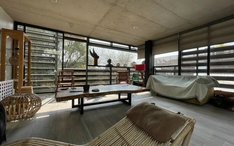 Nos recibe la sala con vista verde a todos los arboles.