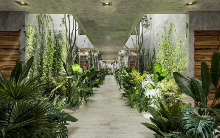 Condominio ubicado en el corazón de Tulum, con sólo 51 departamentos en la zona premium de Aldea Zamá, la mejor plusvalía de la zona, este gran desarrollo conformado por dos módulos paralelos que contienen un vacío entre ellos donde se ubica un gran jardín lleno de vegetación, atravesado por un eje del que surgen conexiones hacia los departamentos por medio de puentes, cuenta con elevadores y una gran cantidad de amenidades que harán de tu estancia en Tulum inolvidable.