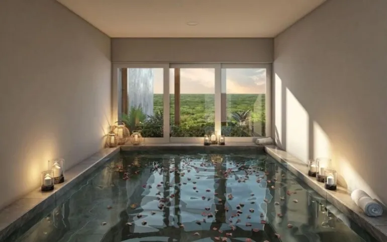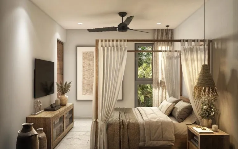 Contamos con unidades de 1, 2 y 3 recámaras con baño cada una, desde 70m2 hasta 246m2, con diferentes formatos, ya sea con jardin, terraza, alberca o jacuzzi privado, todas las diferentes alternativas dentro de un diseño arquitectónico de la cultura Maya.