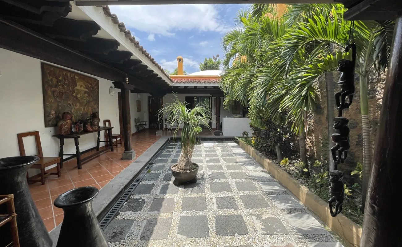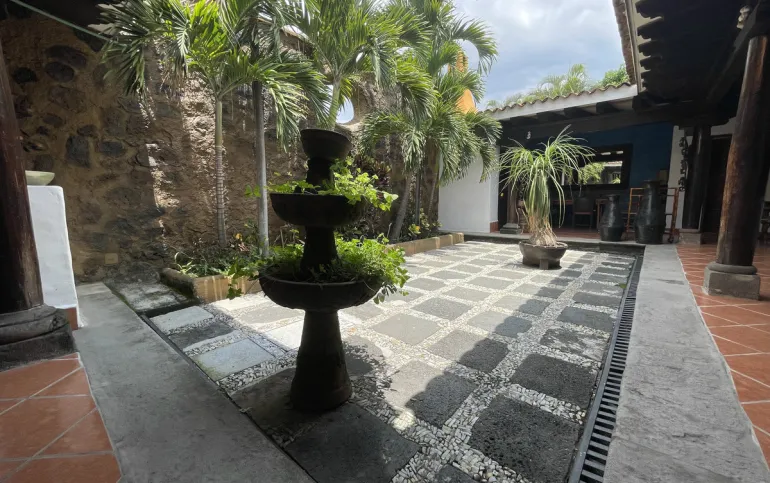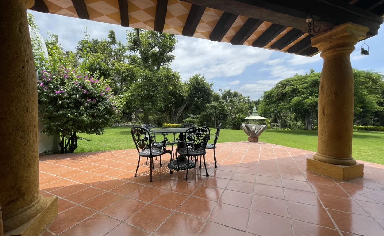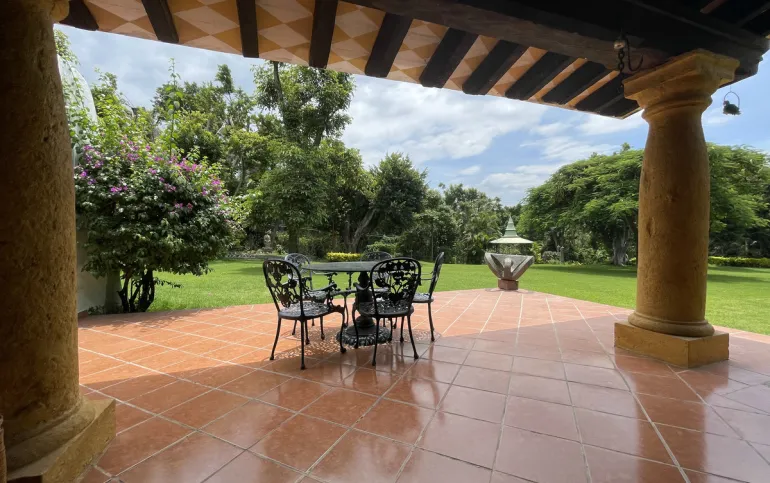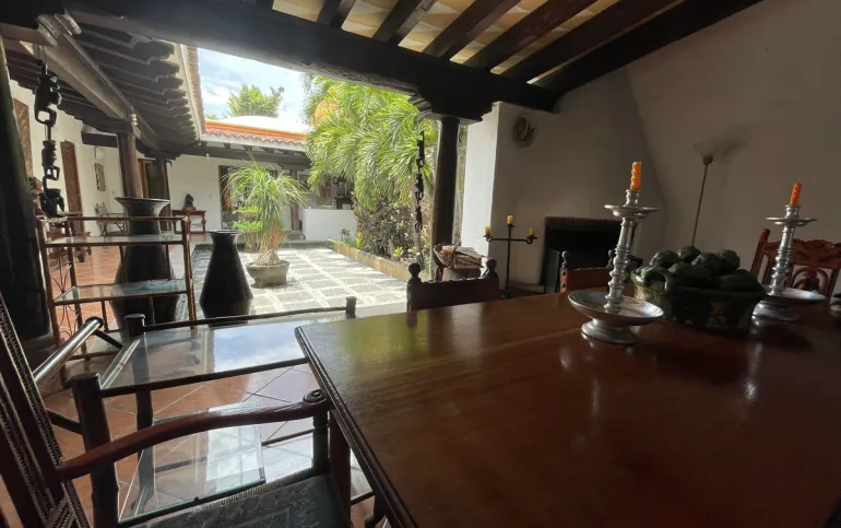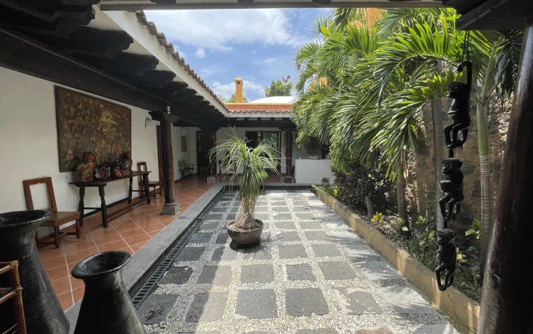 Preciosa casa con patio interior y una terraza con espectacular vista a todo el jardín.