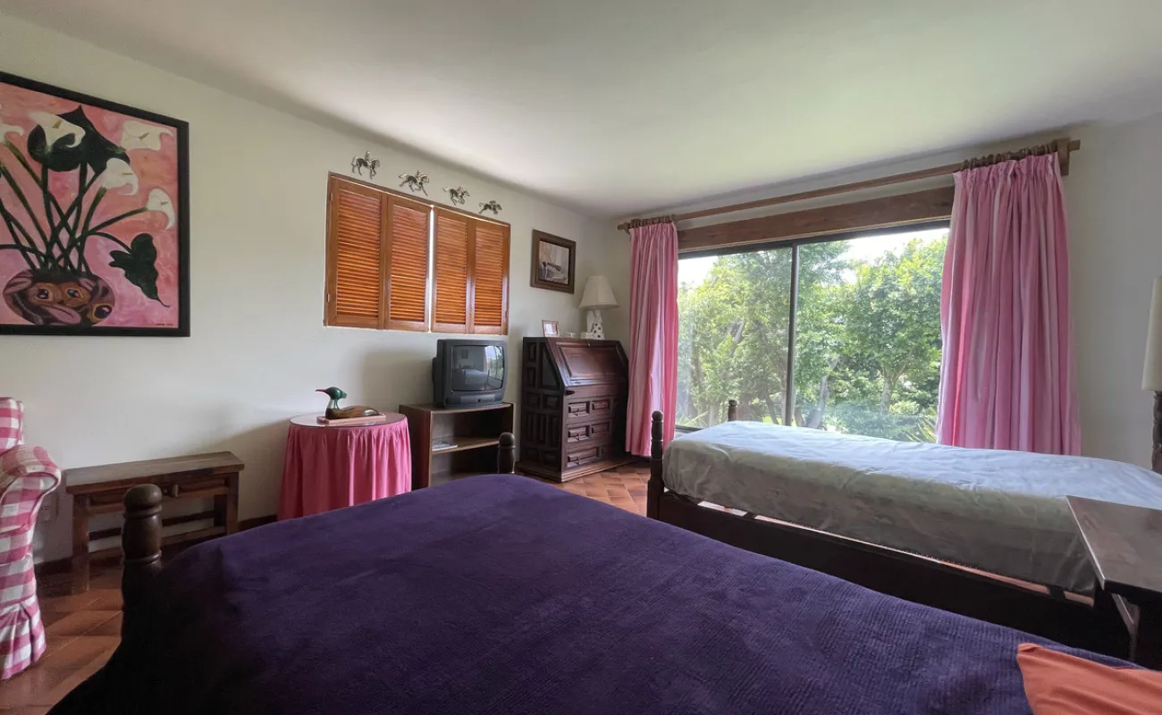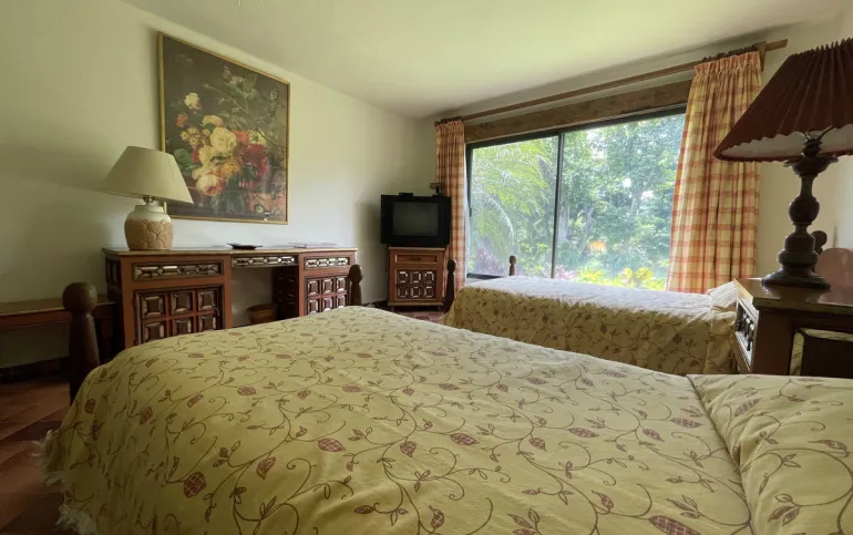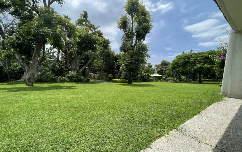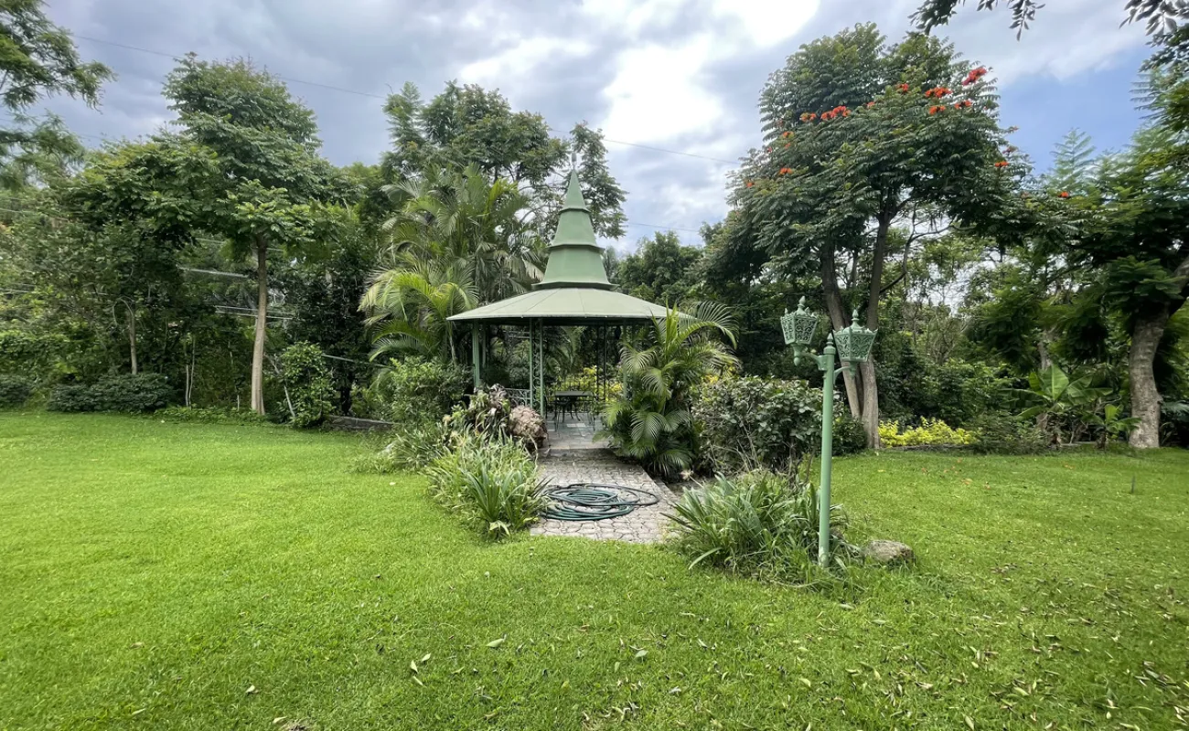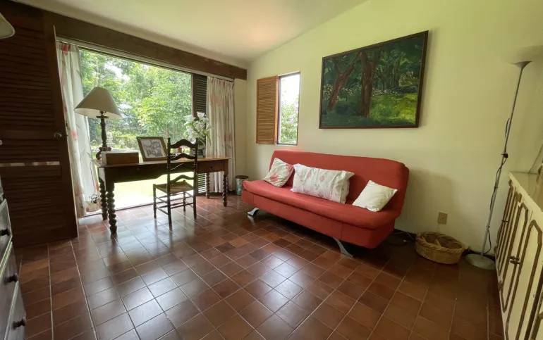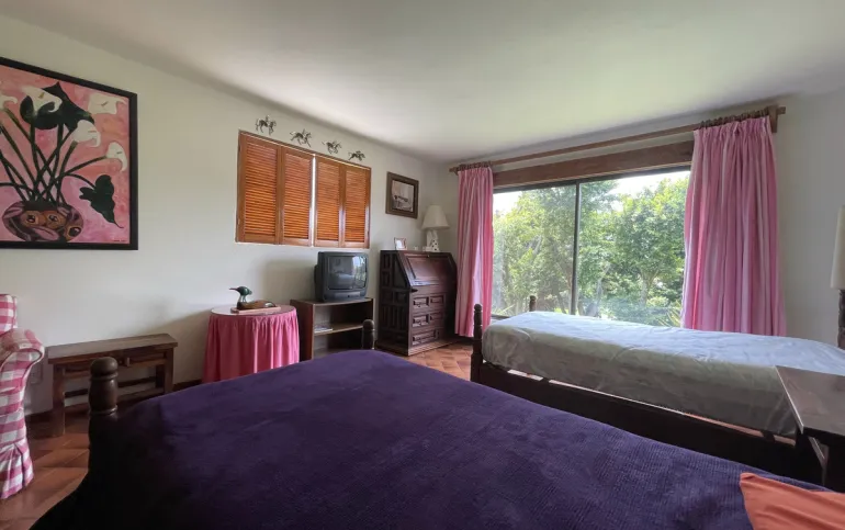 Al fondo del jardín tenemos la casa de los vigilantes con 2 recamaras, baño y area social. De construccion tenemos en esta casa 132 metros.