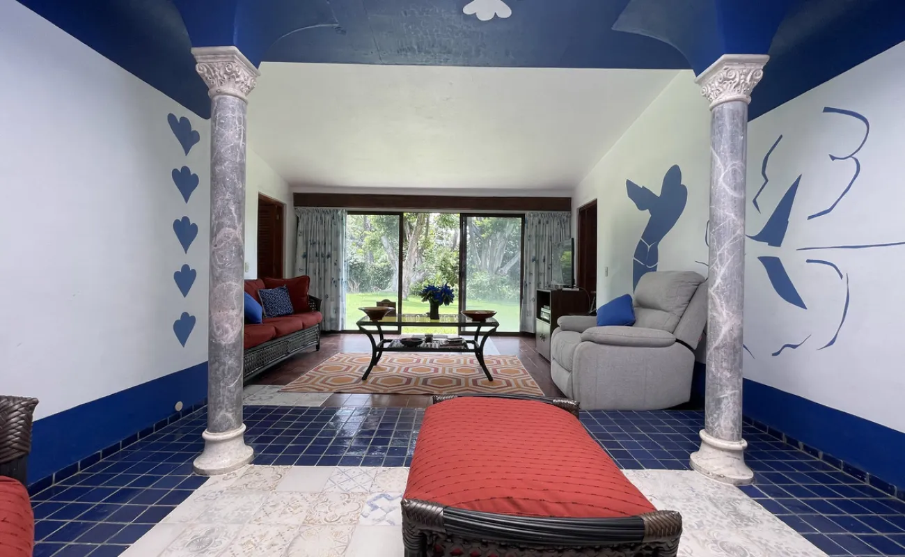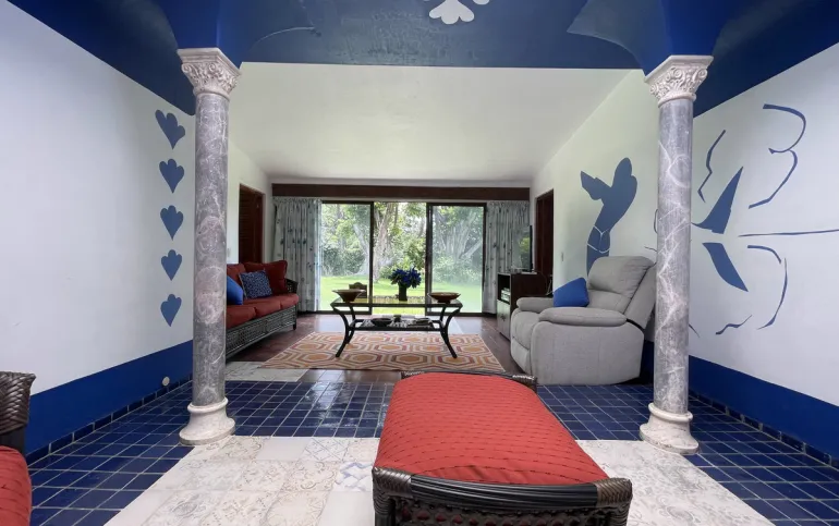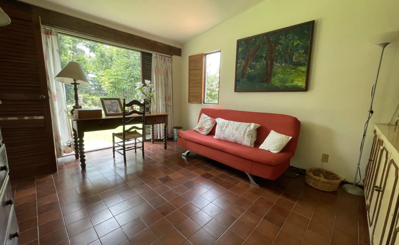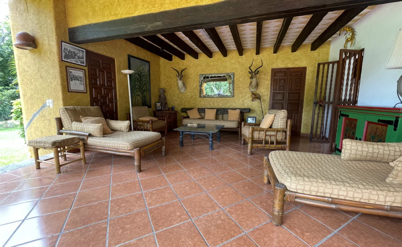Al fondo del jardín tenemos la casa de los vigilantes con 2 recamaras, baño y area social. De construccion tenemos en esta casa 132 metros.
