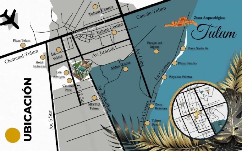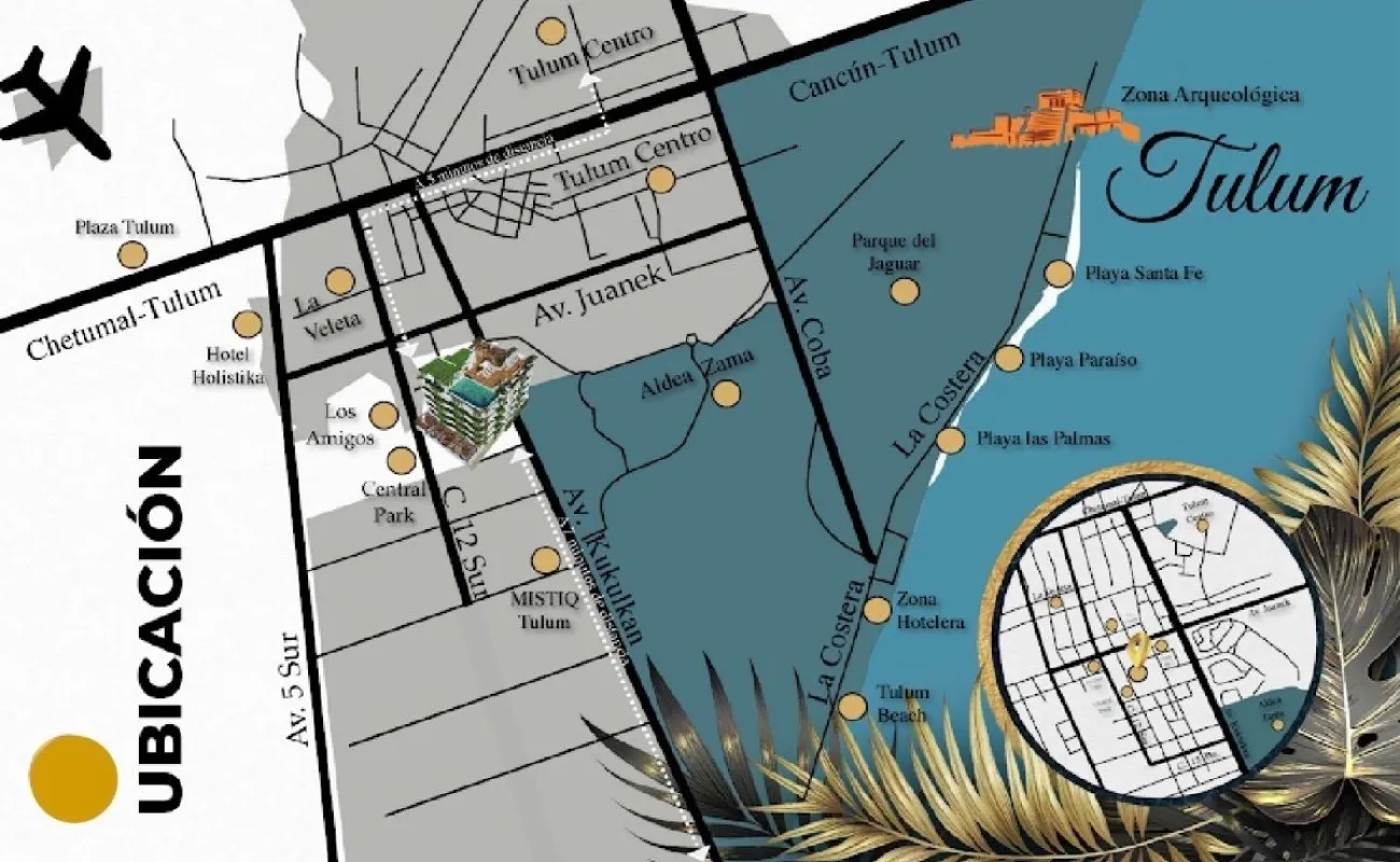 Excelente ubicación a 7 minutos de la playa, a 10 minutos de las mágicas ruinas de Tulum, así como de restaurantes, bares y tiendas comerciales, todo lo que necesitas para tener la mejor inversión de la Riviera Maya, entrega en Julio del 2025.