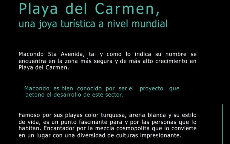 Excelente ubicación sobre la 5 Avenida donde se encuentran los mejores restaurantes, bares y tiendas comerciales, todo lo que necesitas para tener la mejor inversión de la Riviera Maya, entrega en marzo del 2024.