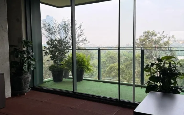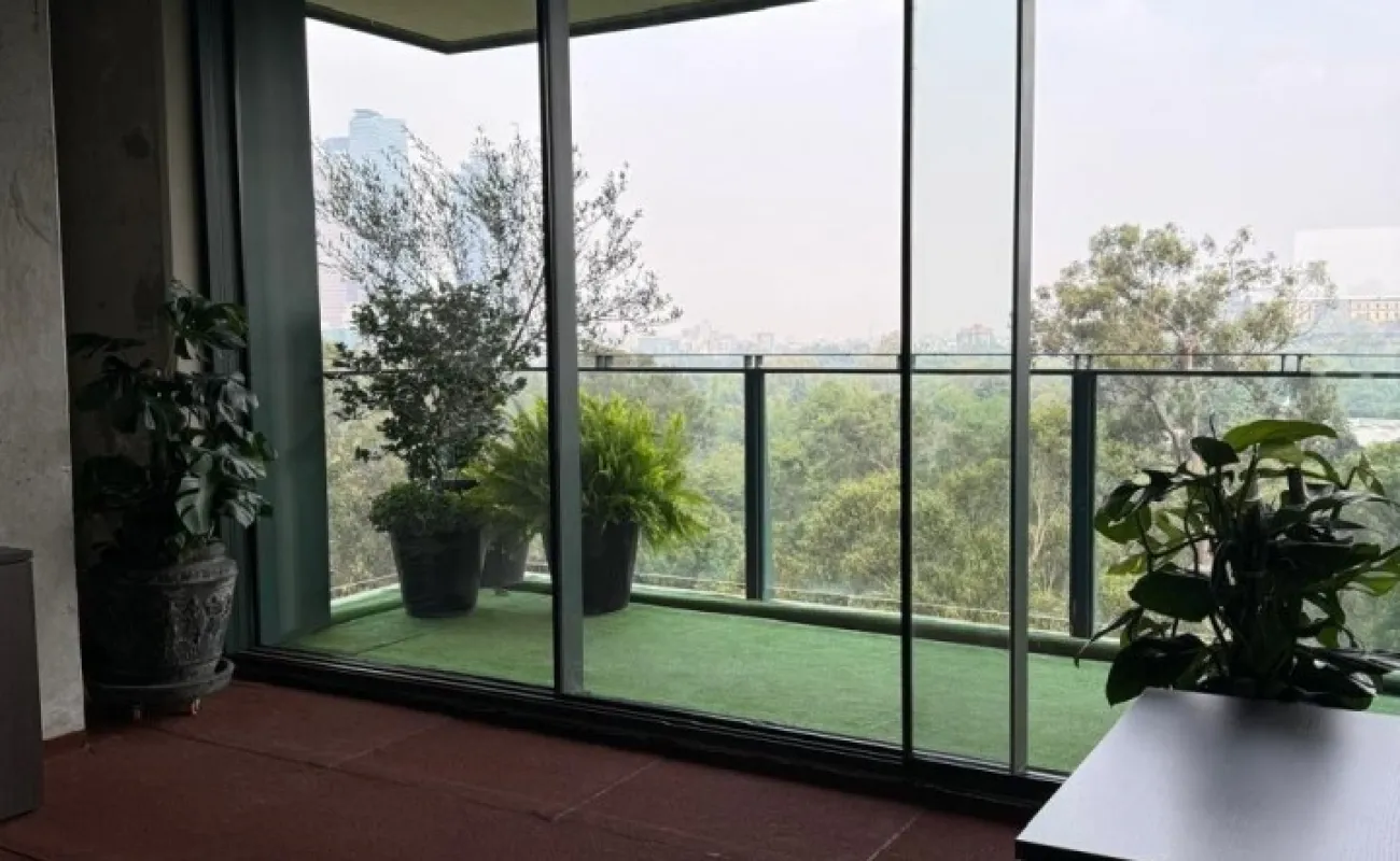 amplia estancia con balcón y vista espectacular al Bosque de Chapultepec.