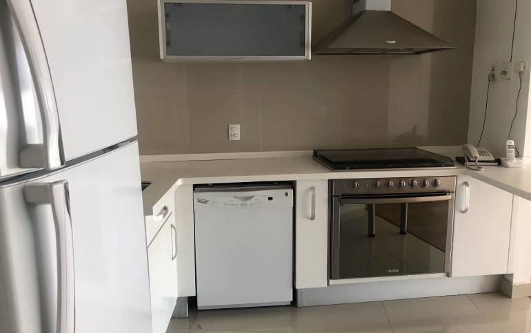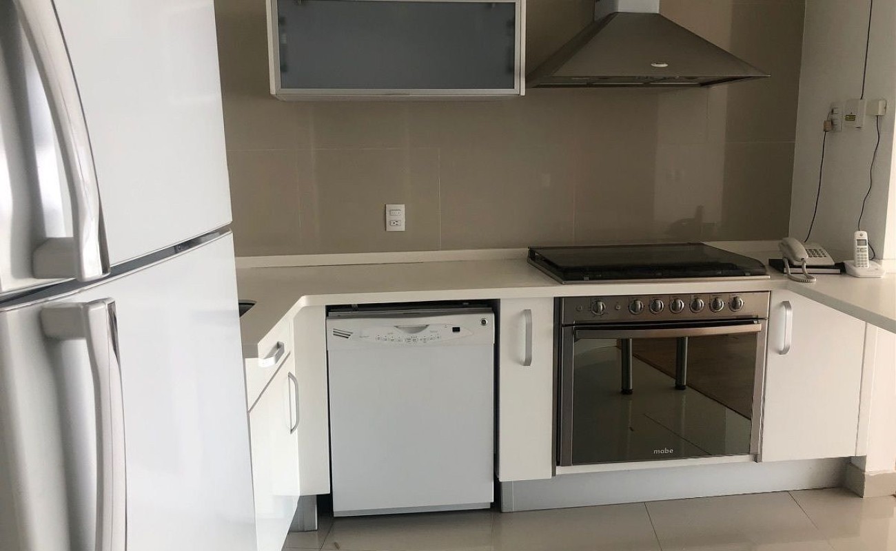 La renta del departamento incluye el refrigerador, lavavajillas y mantenimiento en el precio.