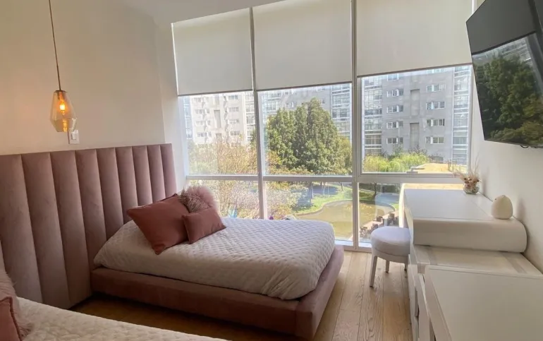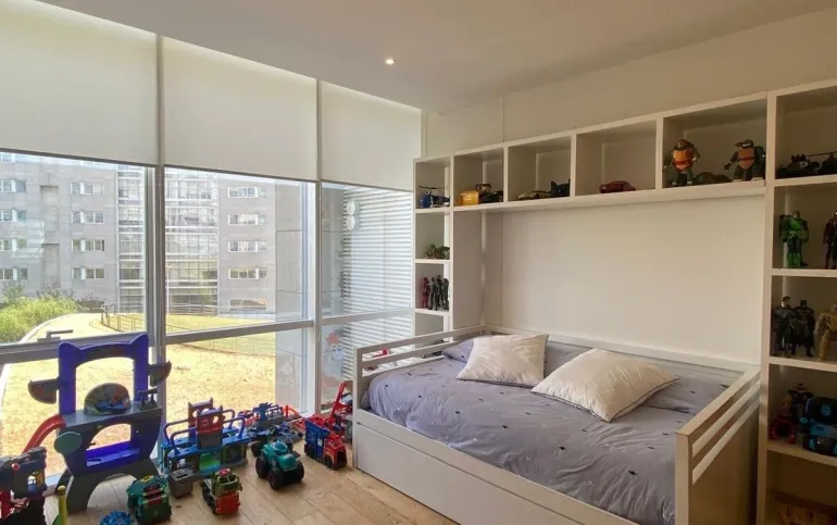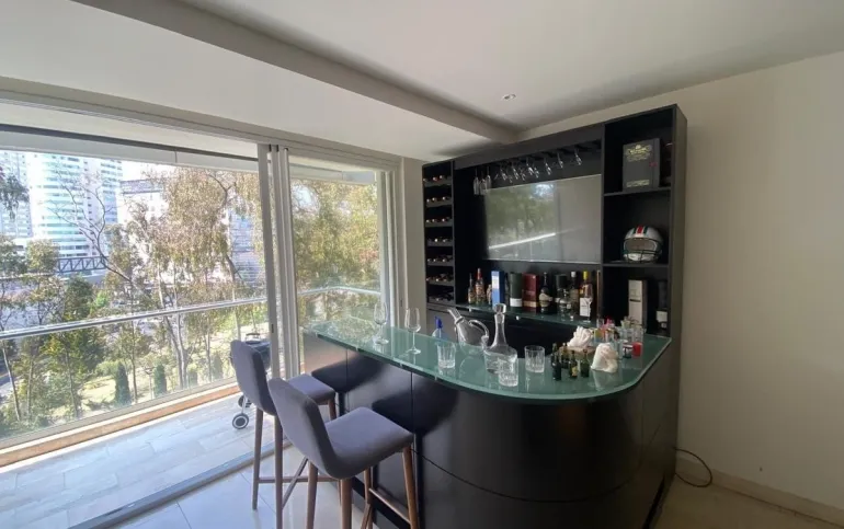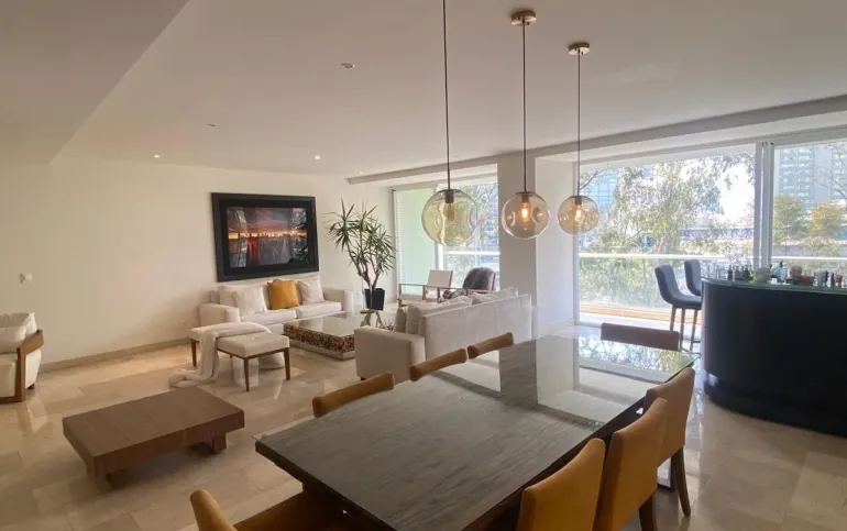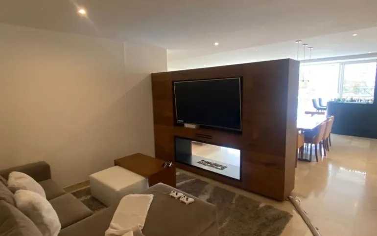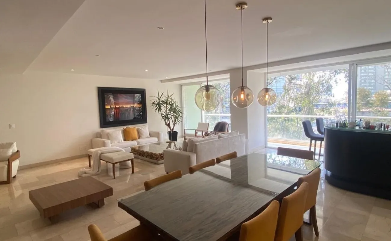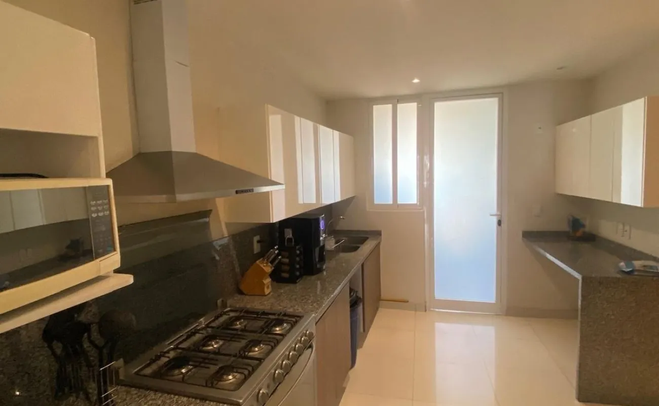 Departamento en Desarrollo Mediterránea, santa fe, a un costado del Hospital ABC. 236m2 3 recámaras, cada una con baño y vestidor. área para sala de TV. Cocina equipada, cuarto de servicio y de lavado. Balcón a lo largo de estancia y recámara principal. Medio baño de visitas. 2 lugares de estacionamiento. Amenidades: Alberca, área de juegos, gimnasio, salón de eventos, jardines y áreas recreativas. Excelente ubicación en el área de santa fe.