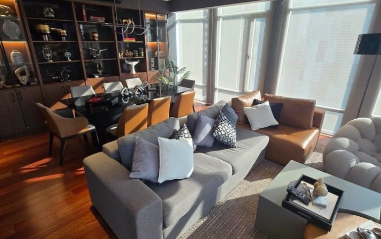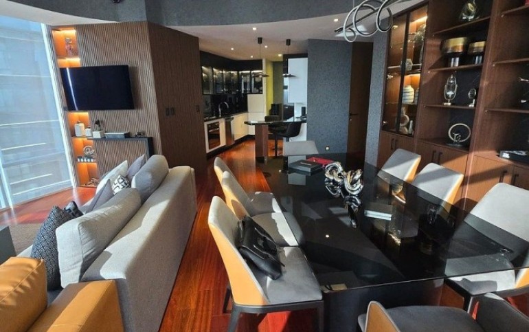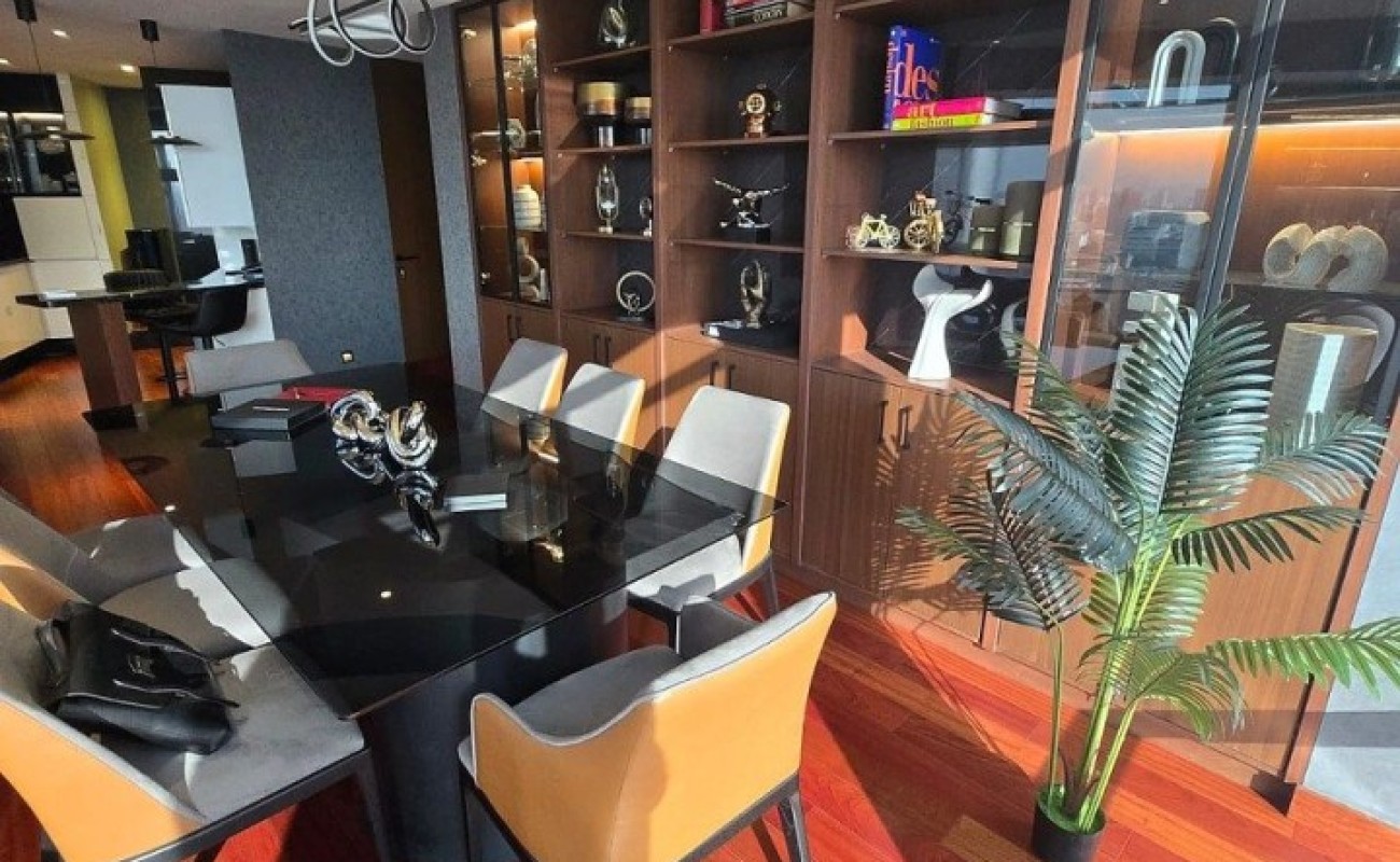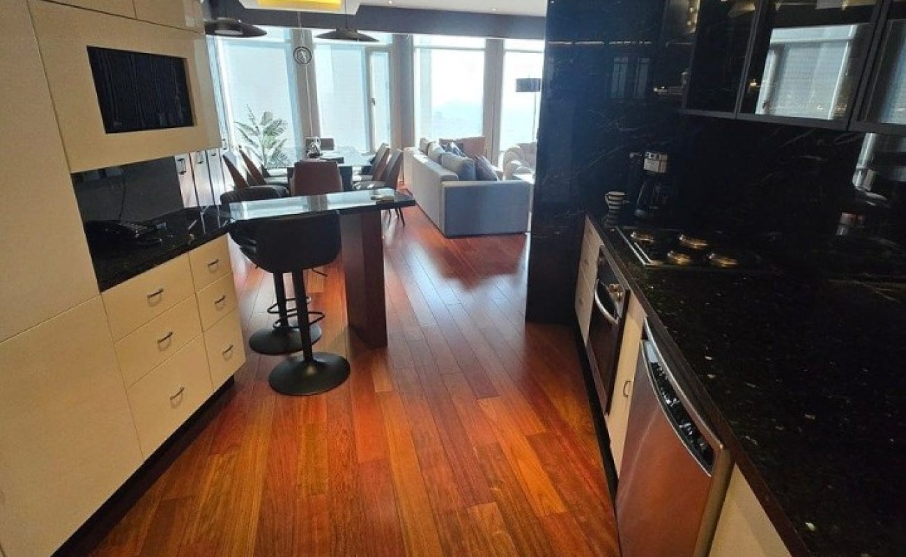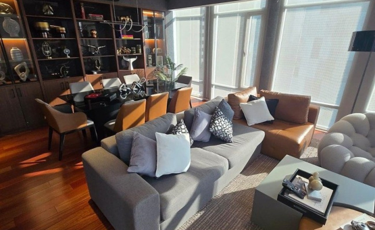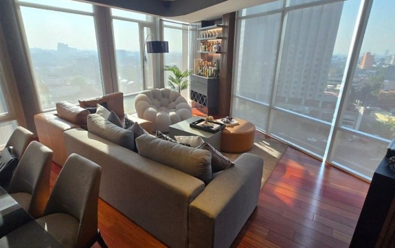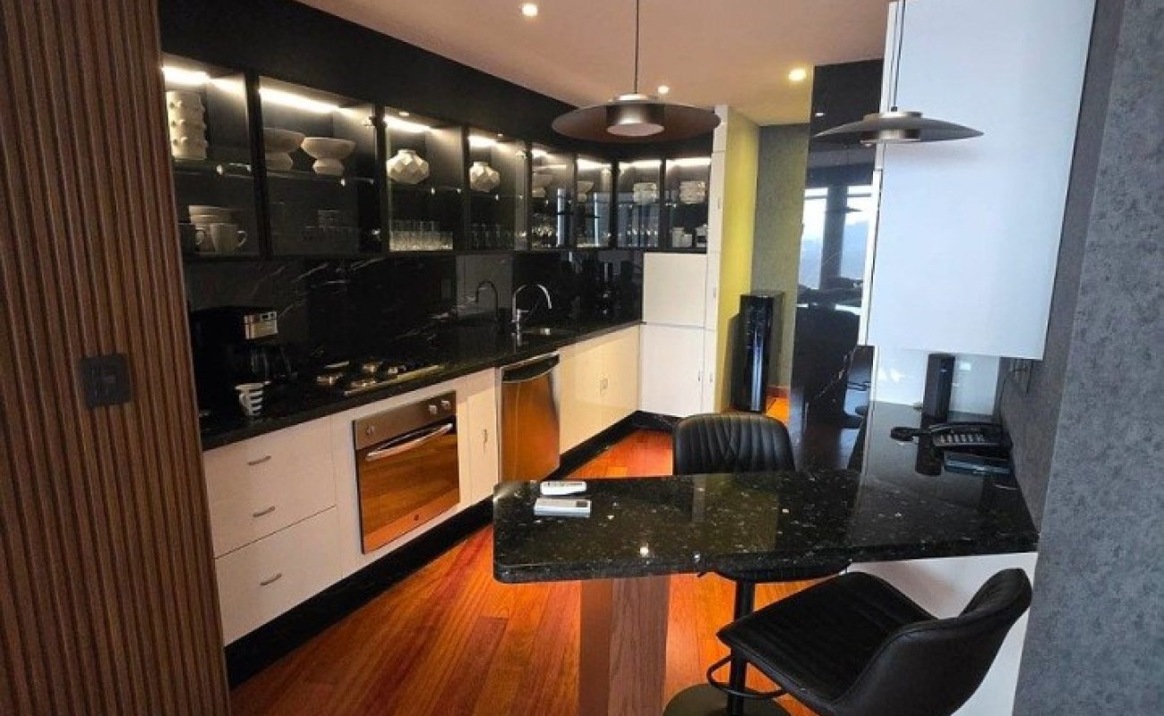 Sala, comedor con ventanales, muebles empotrados de diseñador, cocina abierta, baño de visitas, recámara con black out, clóset y baño completo con vestidor. Área de lavado, baño de servicio.