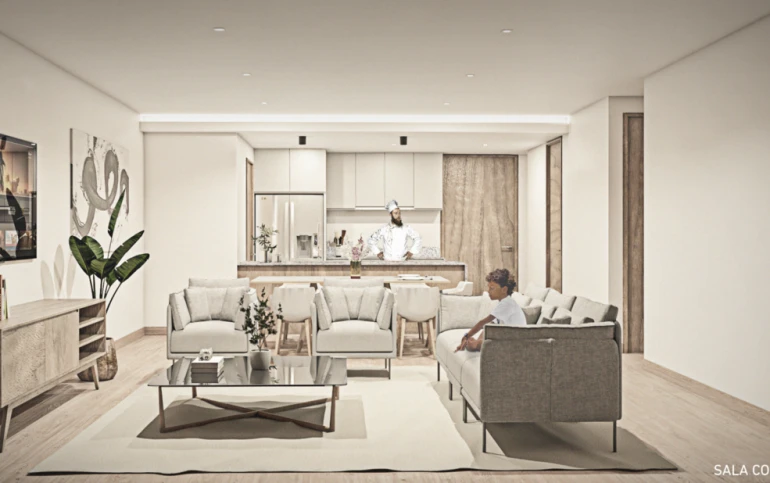 Estancia sala-comedor con generosa iluminación natural, cocina integral cerrada con área de lavado, recámara principal con closet, 2 recámaras junior con closet, 1 medio baño para las visitas y área de lavado.