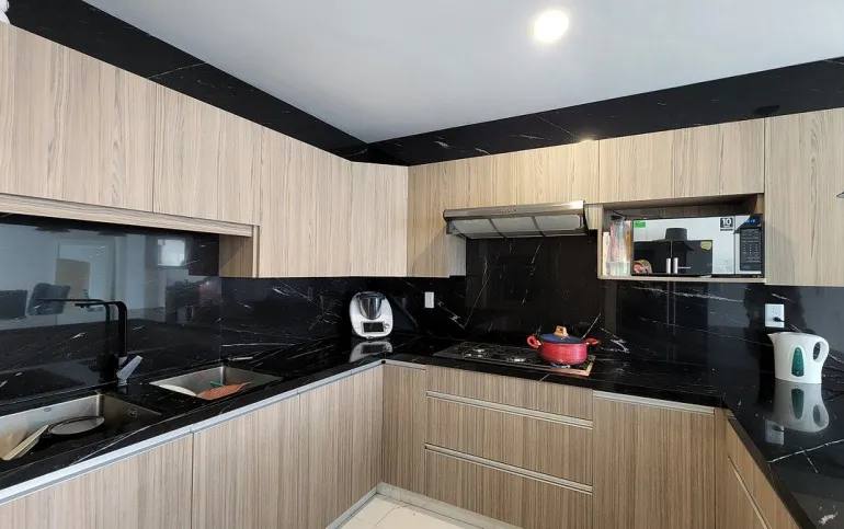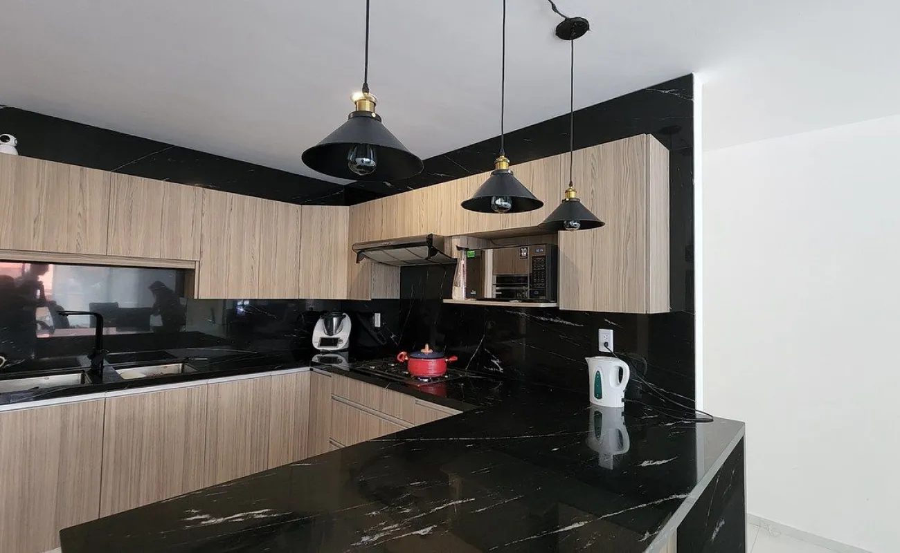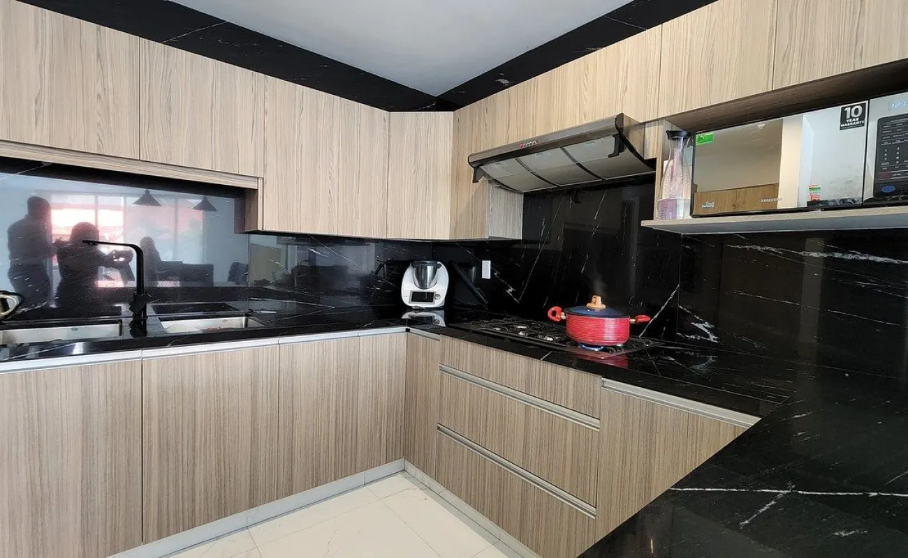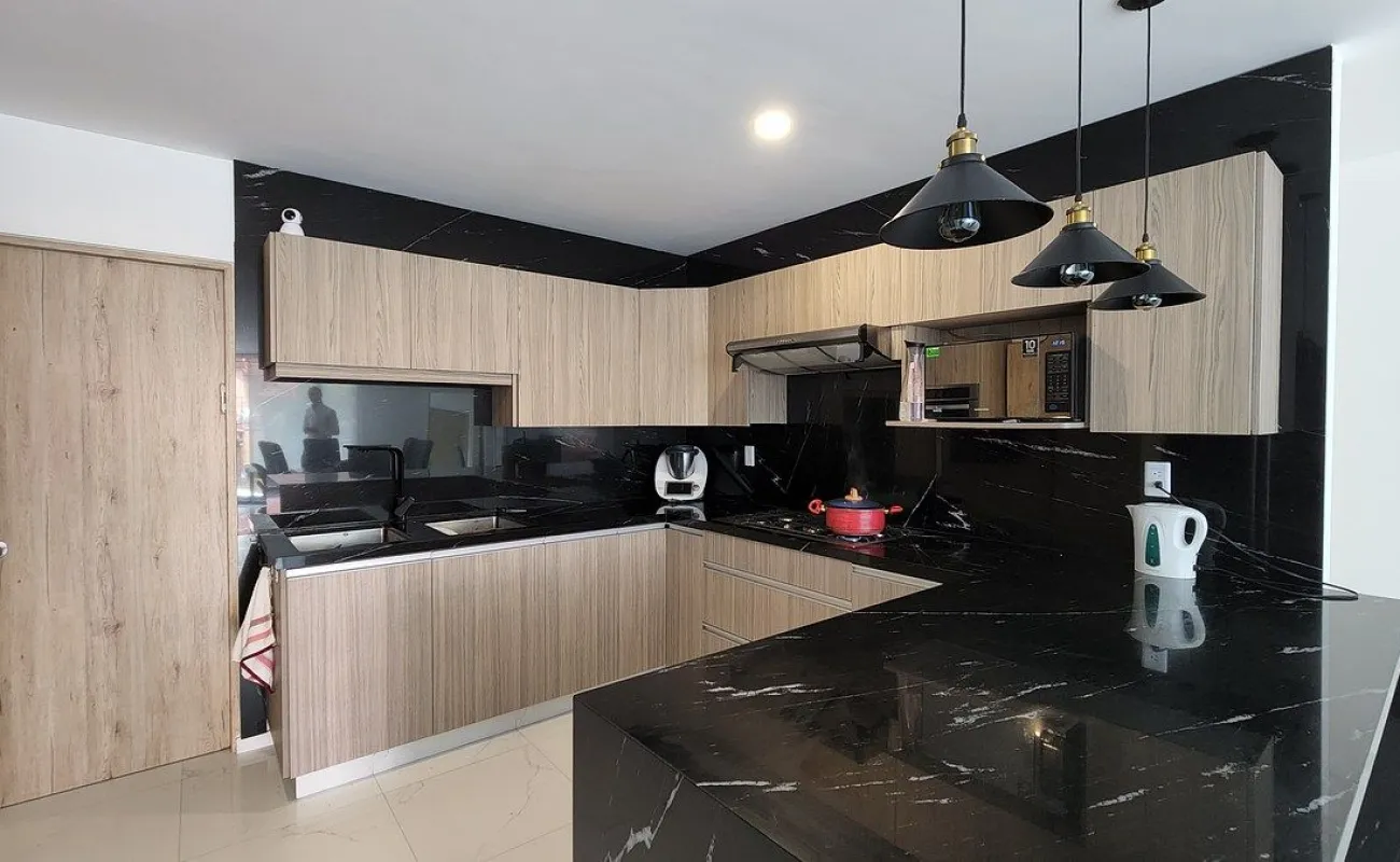- sala-comedor con balcón, cocina integral con barra de granito y con alacena, cuarto de servicio y área de lavado.