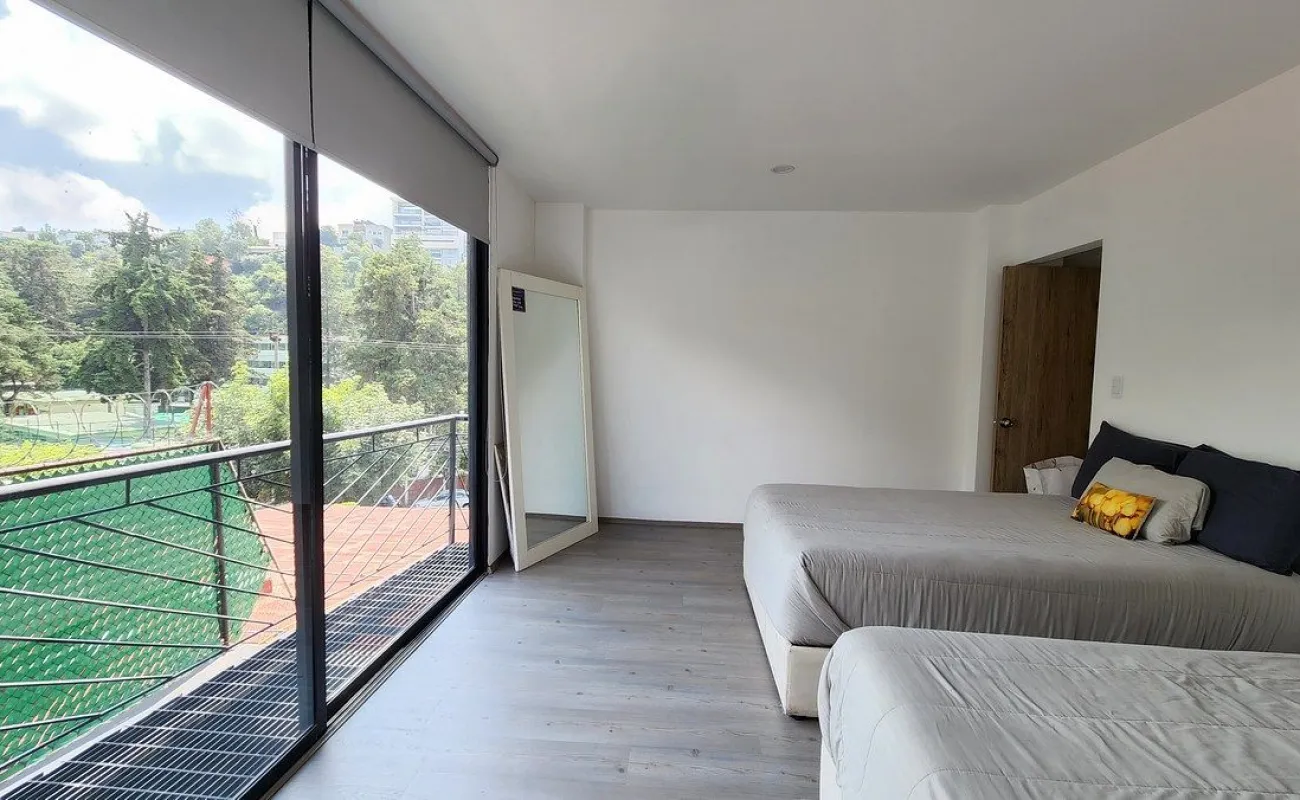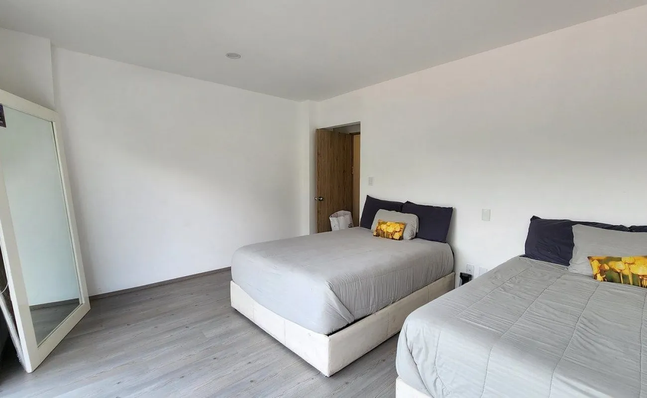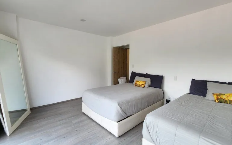 - El departamento es muy cálido, cuenta con 180 m2 bien distribuidos en 3 recámaras cada una con su baño, la principal con vestidor y balcón, y las otras con clóset muy amplio.