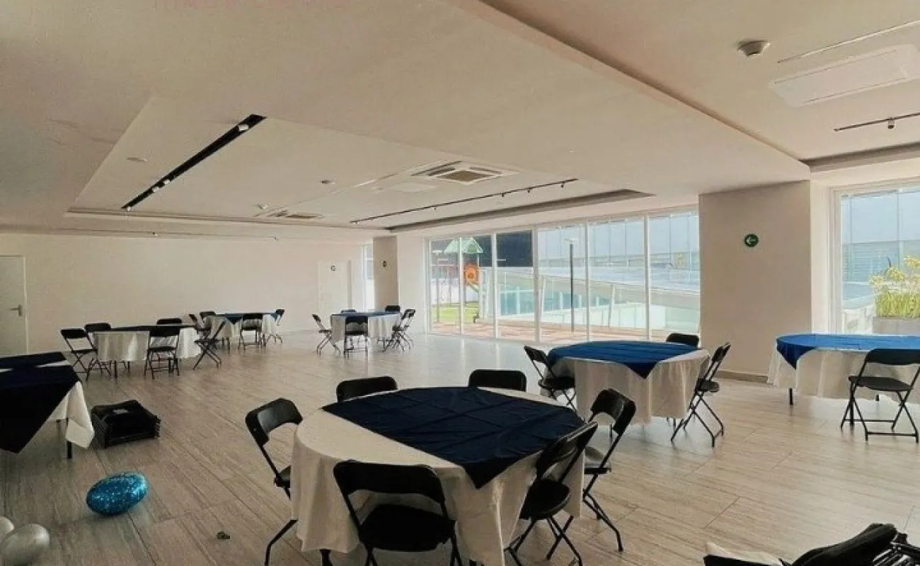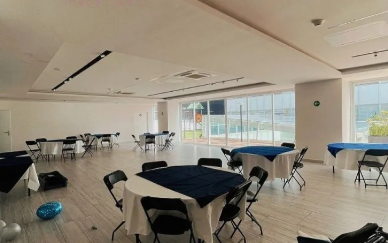 ÁREA DE SERVICIO: Los residentes pueden disfrutar de una amplia gama de amenidades, incluyendo una alberca, gimnasio, salón de juegos, salón de usos múltiples y una terraza jardín común, perfectos para el esparcimiento y la convivencia.