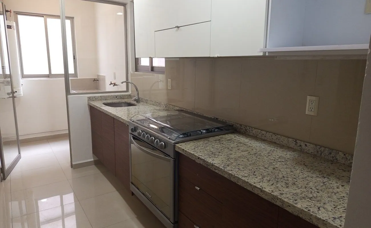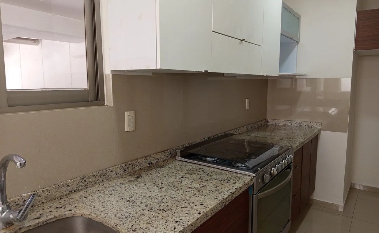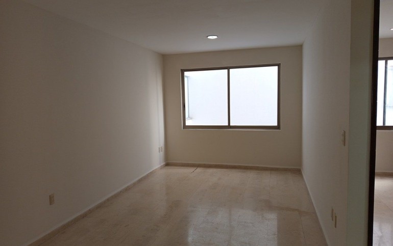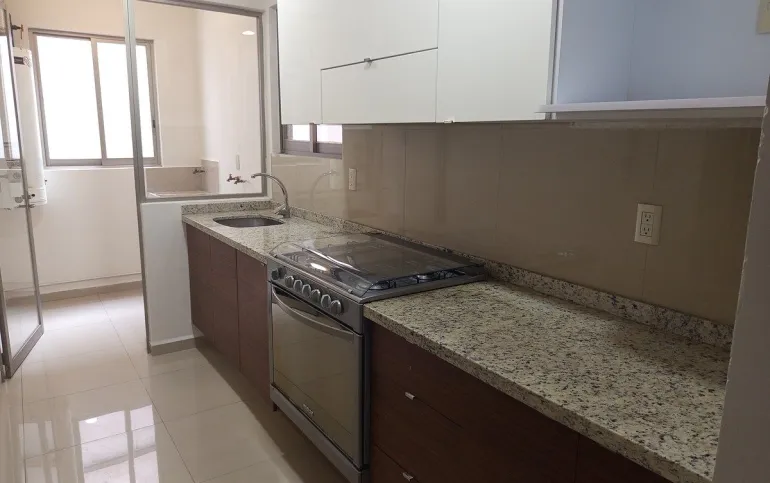 Departamento en renta se encuentra en planta baja, vista interior, 90 m² habitables. Consta de 2 recámaras. La recámara principal tiene baño completo con cancel de aluminio y vestidor. La segunda recámara tiene closet de piso a techo. El segundo baño es completo. Sala, comedor, iluminada y ventilada. Cocina integral. Cuarto de lavado integrado con ventilación natural. Tiene 1 lugar de estacionamiento, se acepta mascota pequeña, mantenimiento incluido. El condominio cuenta con vigilancia 24 horas, circuito cerrado, servicio de paquetería, elevador, roof top común sin costo extra. Tiene una edad de 8 años. Ubicado entre las calles de Heriberto Frías y Sánchez Azcona. Requisitos: identificación, comprobar ingresos 3 veces el valor de la renta, obligado solidario, renta por adelantado, un depósito de una renta, póliza jurídica $9,000.00, contrato a 12 meses.