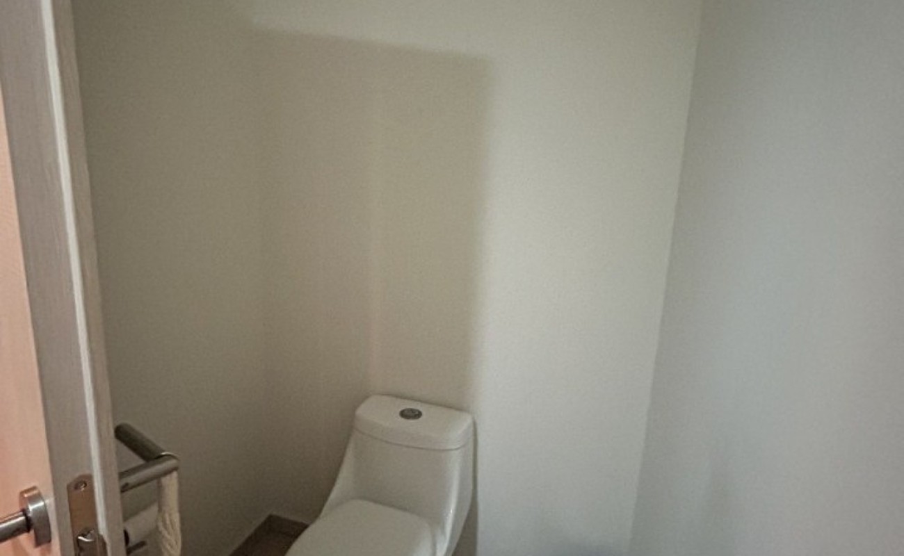 Cuenta con una recámara, un baño completo, medio baño y un estacionamiento.