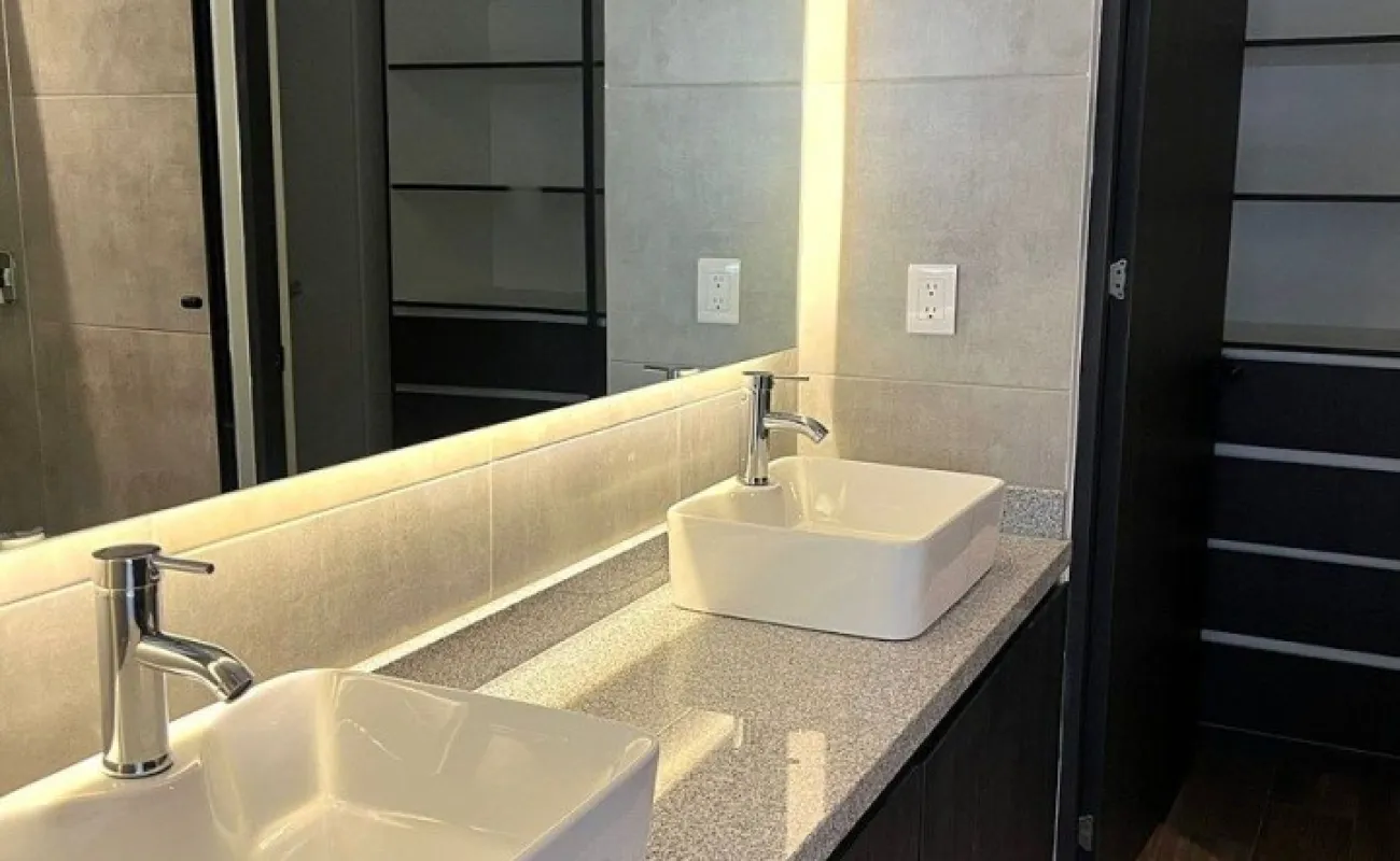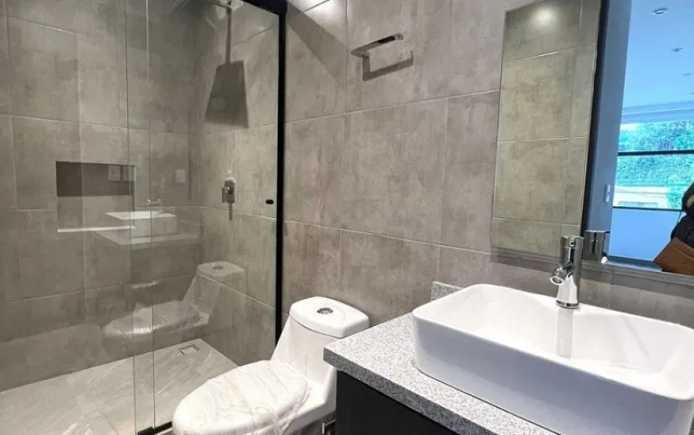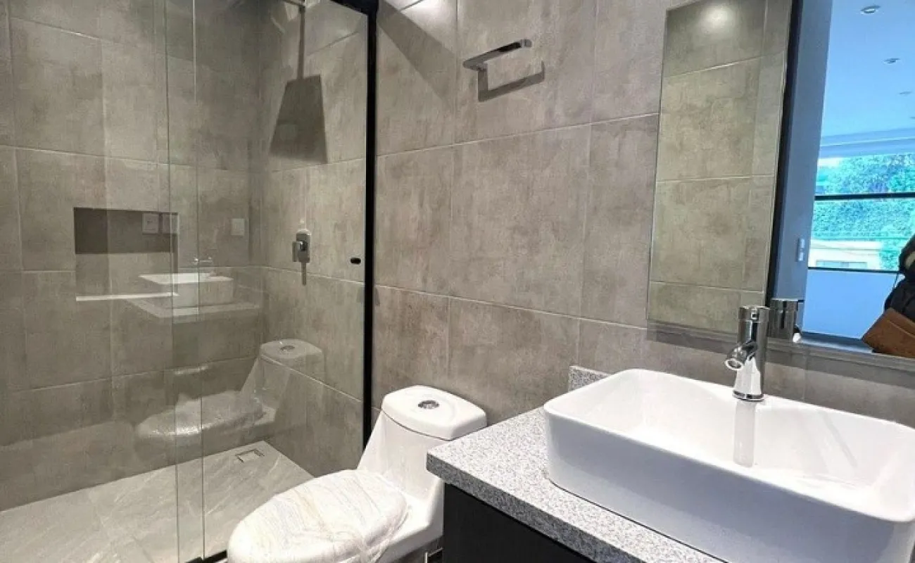 Recámara principal con baño y vestidor, 2a recámara con clóset y baño completo privado. 3a recámara con clóset y comparte baño completo con visitas (entrada independiente).
