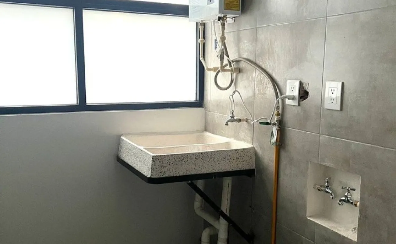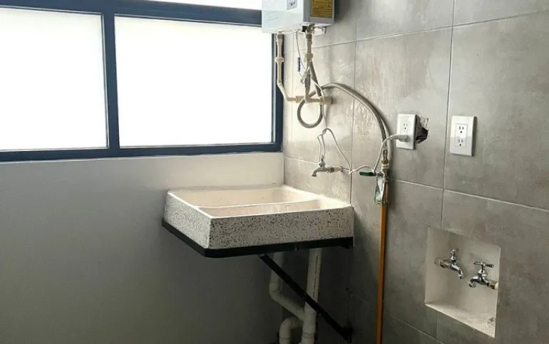 Cuarto de servicio con baño completo, área de lavado y tendido.