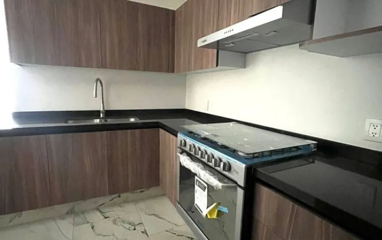 Estrena amplio departamento con pisos de mármol, espacioso. Cocina abierta, estancia y comedor con balcón.