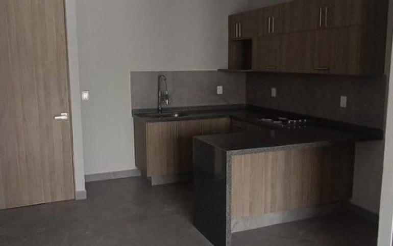 Con superficie de 73.89 m2, con balcón, con sala comedor, cocina integral abierta hacia la estancia barra de granito y estufa eléctrica, área de lavado, recamara principal con closet baño, recamara secundaria con closet, baño completo que comparte con visitas, estacionamiento cubierto para un auto, bodega.