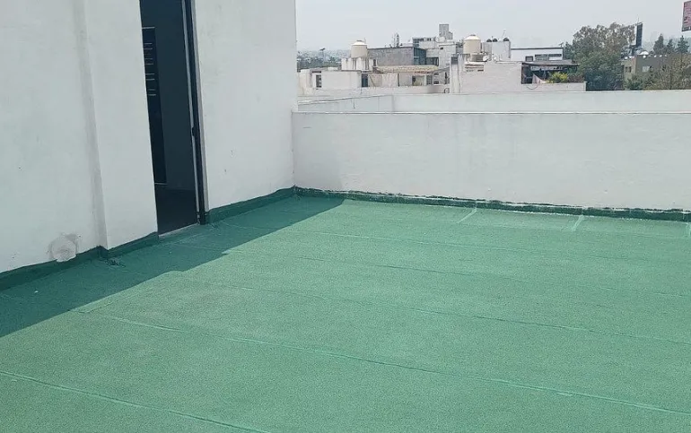 Con superficie de 75.42 m2, con balcón, con sala comedor, cocina integral abierta hacia la estancia barra de granito y estufa eléctrica, área de lavado, recamara principal con closet baño, recamara secundaria con closet, baño completo que comparte con visitas, estacionamiento cubierto para un auto, bodega, roof garden privado de 73 m2