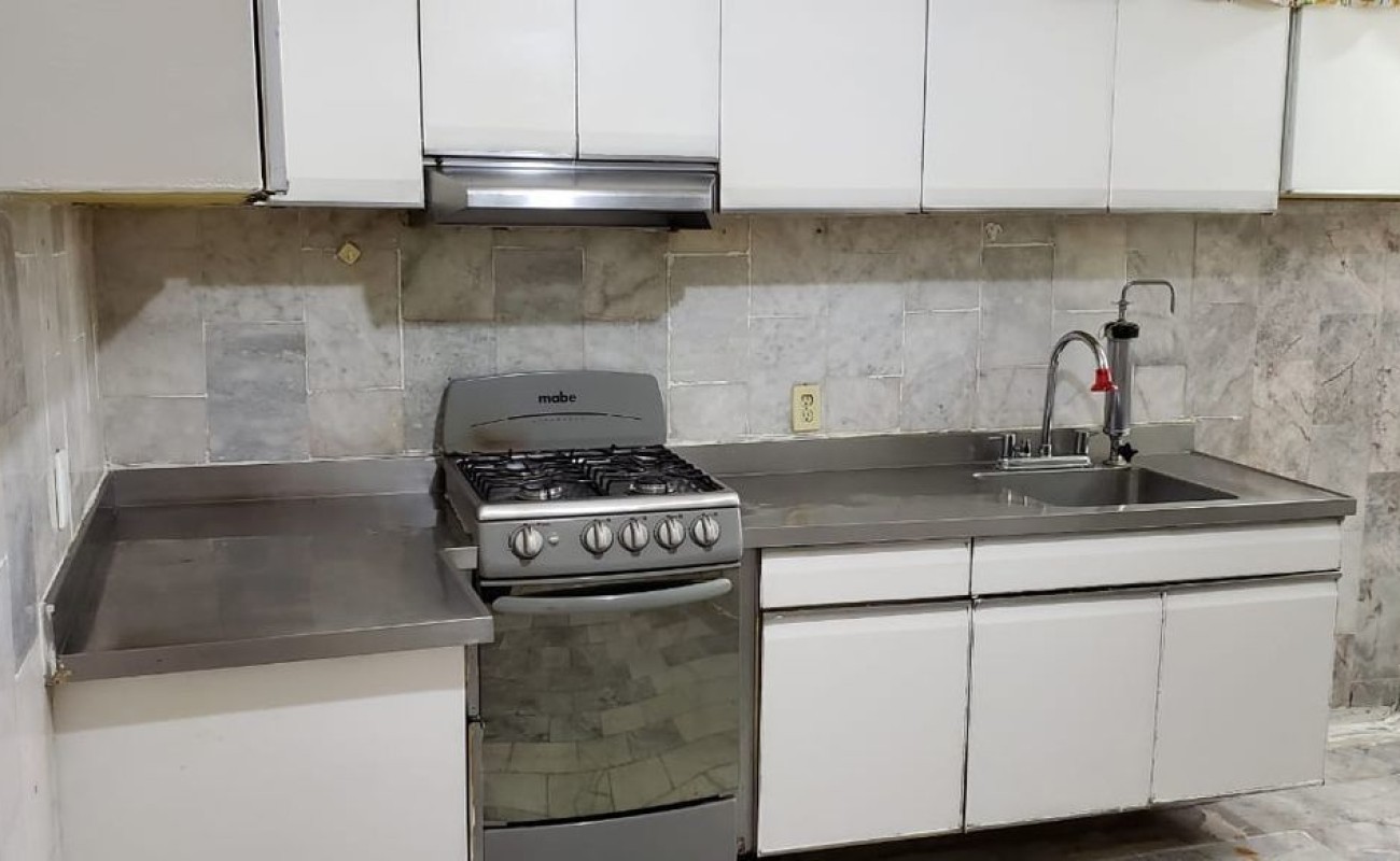 Cuenta con sala, comedor, cocina, 3 recámaras, 2 baños, cuarto de servicio con baño, área de lavado y jaula de tendido. Conserje. No elevador