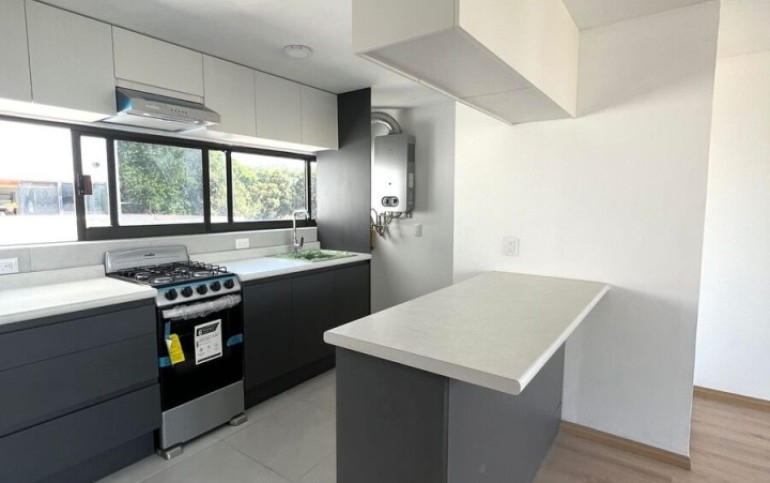 Lindo y acogedor departamento exterior en el 6to piso. Iluminado, recién remodelado, para estrenar. Edificio de 8 pisos construido en dos naves con 4 deptos por piso.