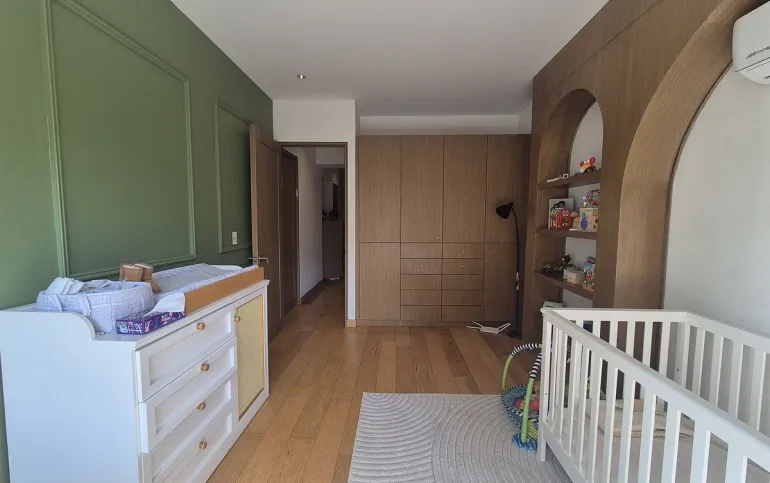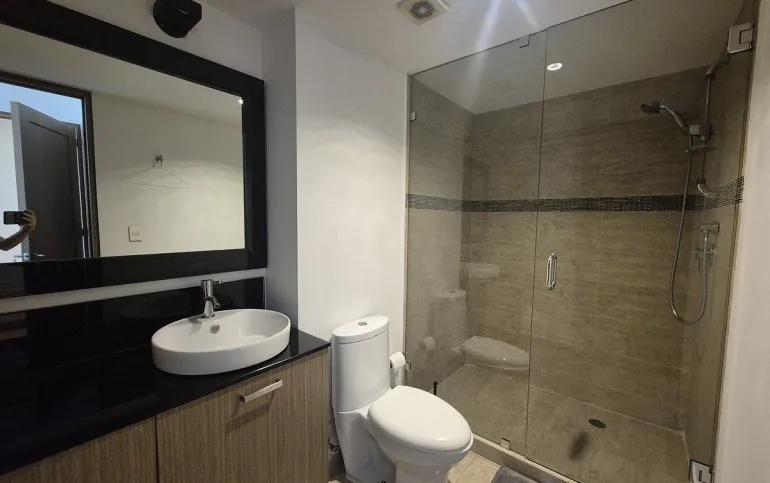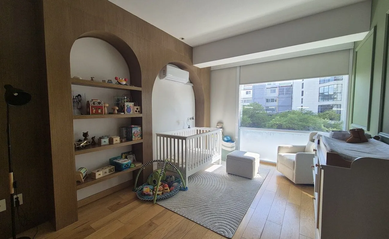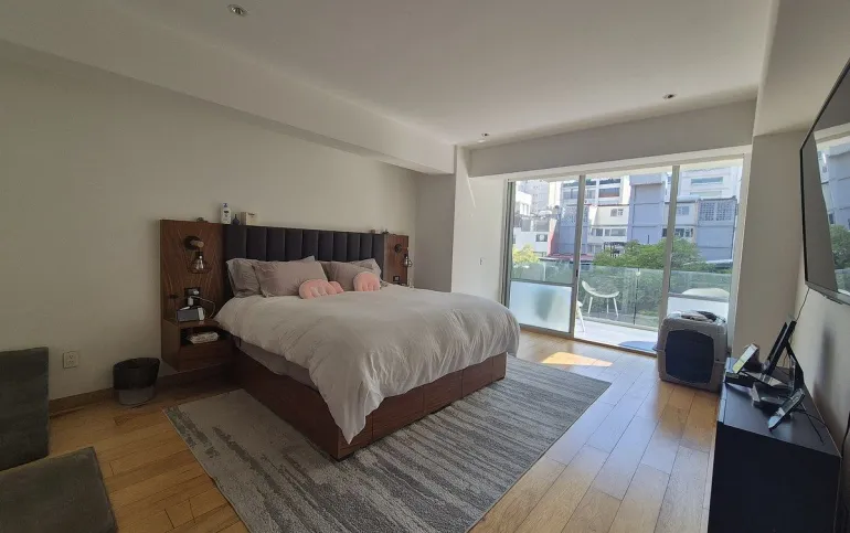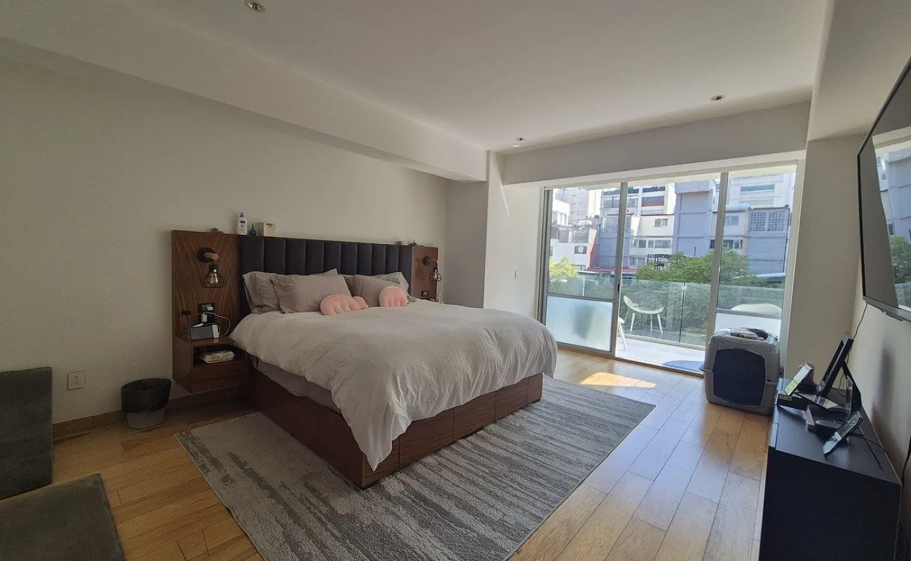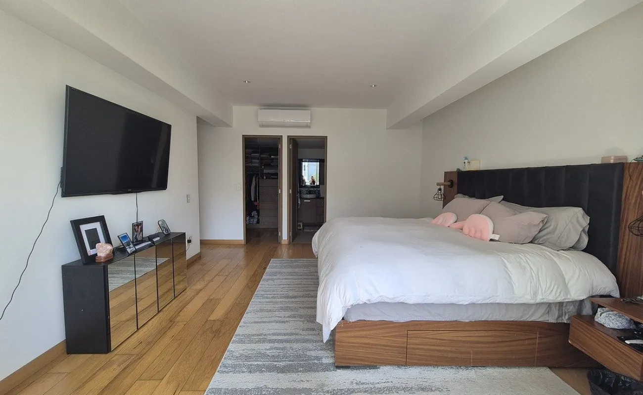 Cuenta con tres recámaras, una de ellas sin baño, y tres baños completos. La recámara principal destaca por su amplitud, iluminación natural, balcón privado, baño en suite con doble lavabo y un vestidor generoso. El segundo dormitorio también cuenta con su propio baño, mientras que el