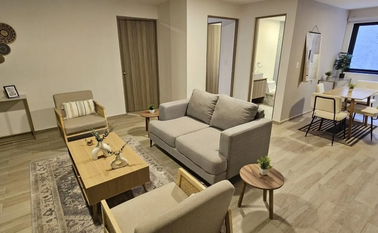 Te presentamos este acogedor departamento interior de sesenta punto noventa y cuatro metros cuadrados, diseñado para ofrecerte un espacio funcional y bien distribuido. Consta de dos recámaras cómodas, dos baños completos y una estancia que integra sala y comedor, ideal para disfrutar de momentos de descanso y convivencia en tu día a día.