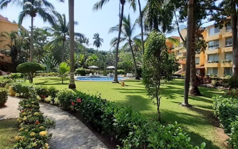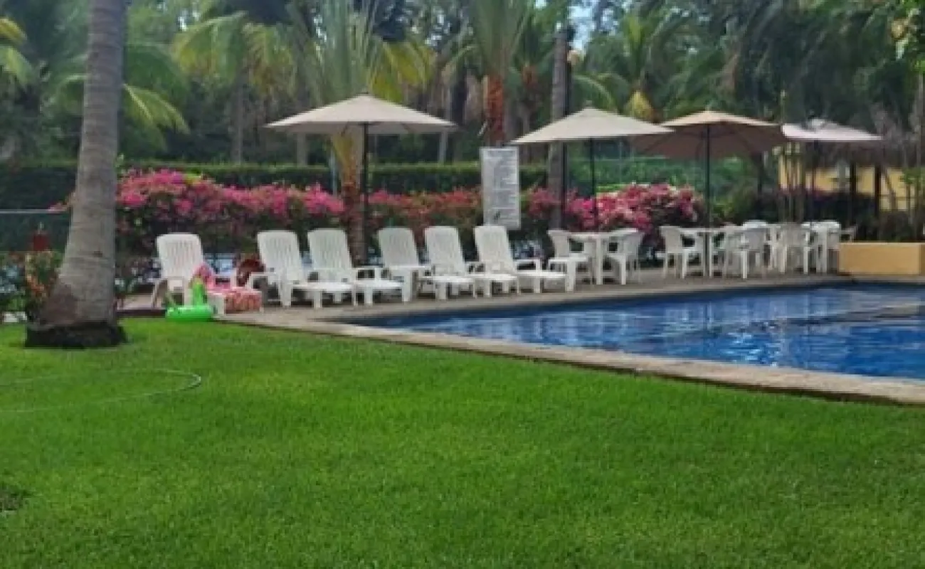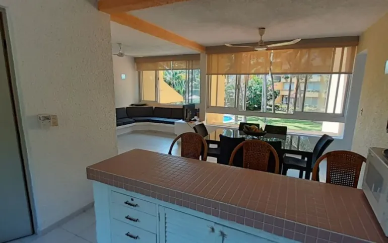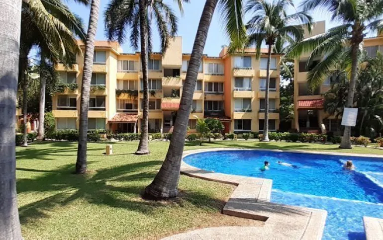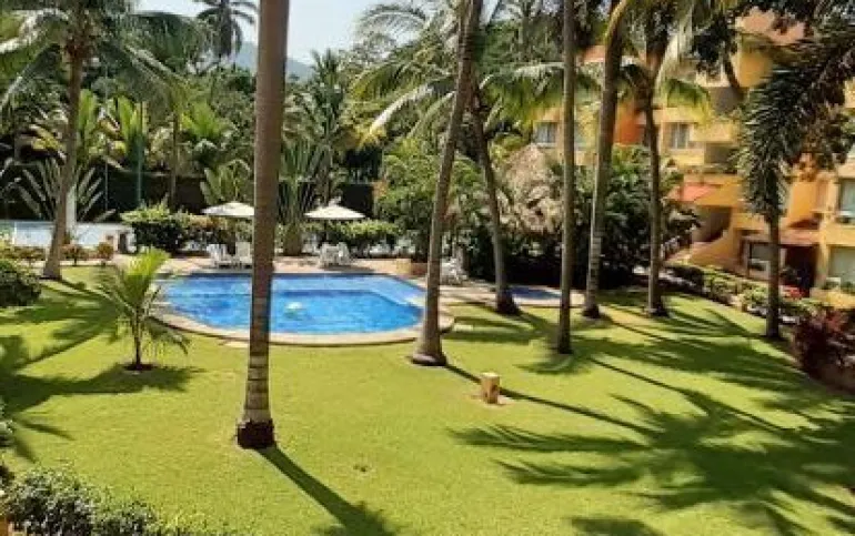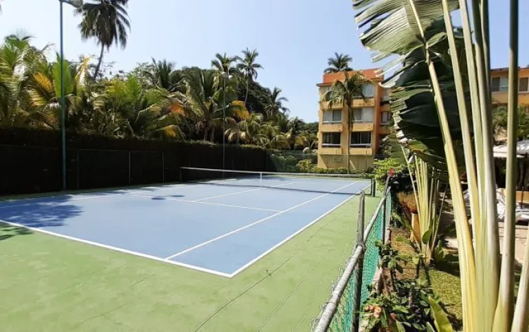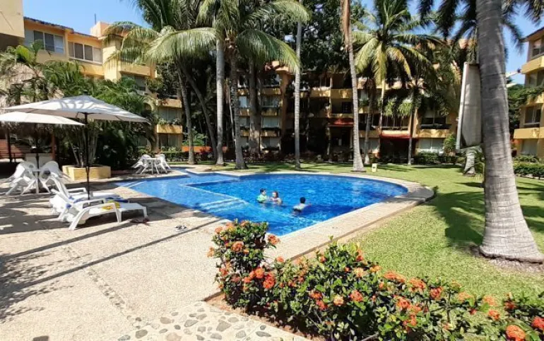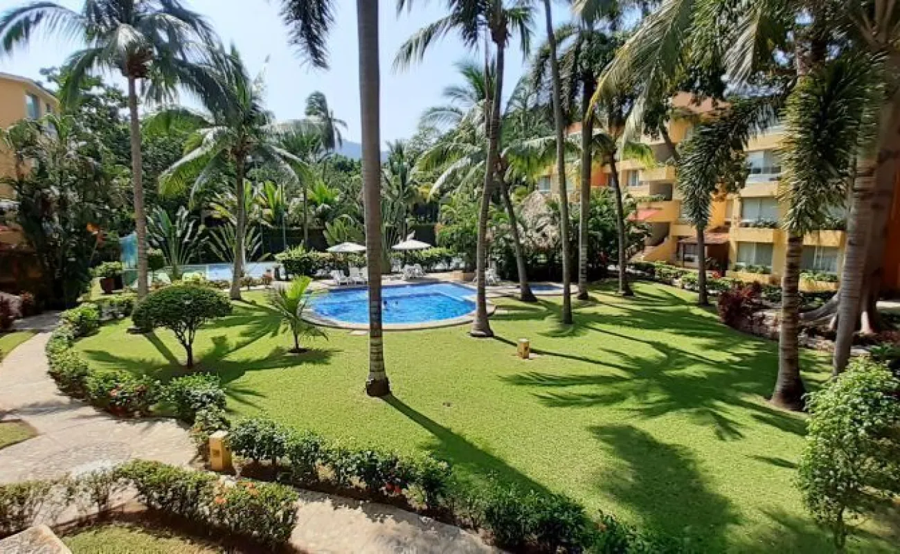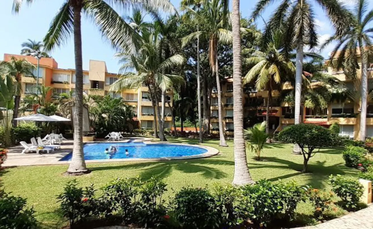 Vendo departamento en condominio con alberca, jardín y cancha de tenis, en Ixtapa, Zihuatanejo, Gro. Departamento de 120 m2, en primer piso. Estancia sala-comedor con A/A minisplit y vista a la alberca, cocina integral abierta con barra, recámara principal con closet, baño, A/A minisplit y vista a la alberca, al jardín y a la cancha de tenis, baño de visitas completo (compartido con la 1a. recámara junior), 1a. recámara junior con closet, baño, A/A minisplit y vista al jardín trasero, 2a. recámara junior con closet y vista a la alberca, cuarto de lavado integrado con baño completo, un cajón de estacionamiento independiente, en condominio de 28 departamentos, amplio jardín interior con espectaculares palmeras, hermosa alberca con chapoteadero, palapa con tarja, cancha de tenis, caseta de vigilancia con portero 24 horas. El condominio cuenta con impecable administración externa, servicio de limpieza y lavado de blancos. El condominio está ubicado a 4 minutos de los hoteles Barceló Ixtapa y Pacífica Resort Ixtapa, a 2 minutos del Campo de Golf Ixtapa, a 8 minutos de Marina Ixtapa y de Naútica Golf Course. Ixtapa se localiza a 15 km de Zihuatanejo. Ixtapa y Zihuatanejo se distinguen por sus hermosas playas (La Ropa, Las Gatas, Playa Quieta, El Palmar, La Isla, etc.). Ixtapa está ubicado en 2.5 horas de la hermosa ciudad de Morelia, Mich.