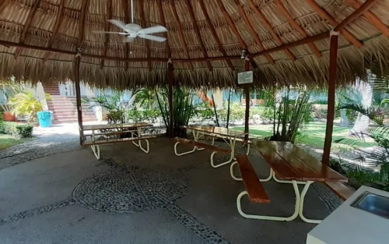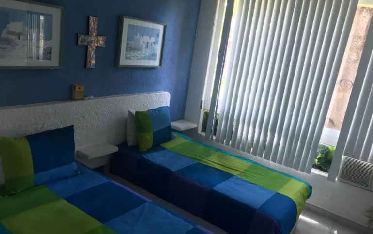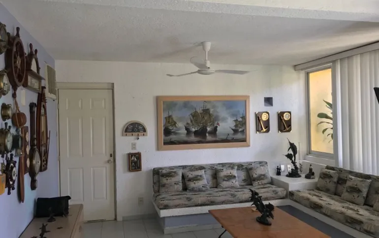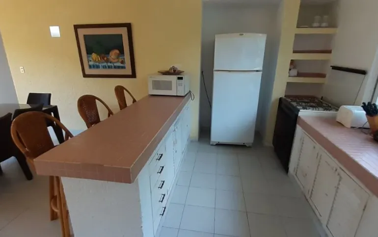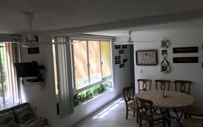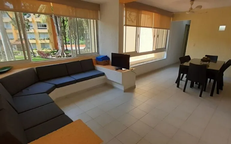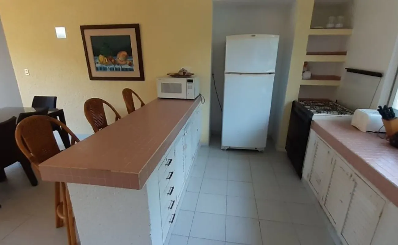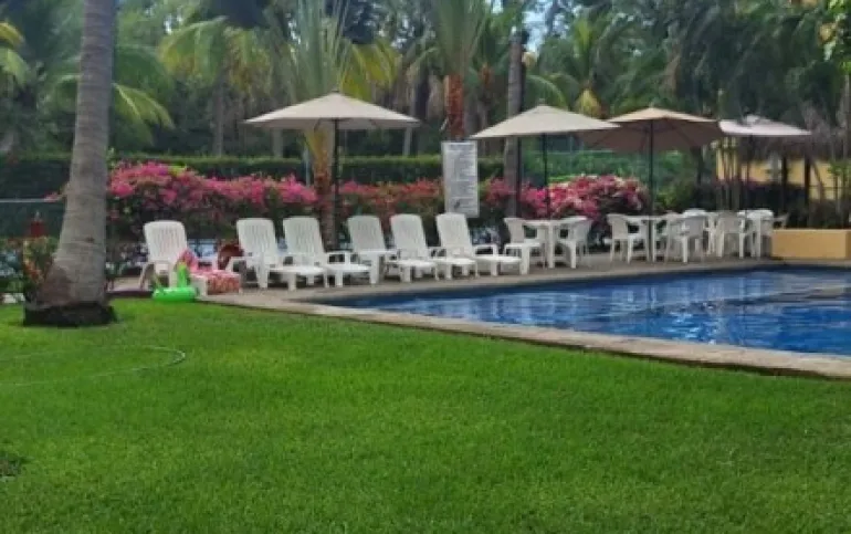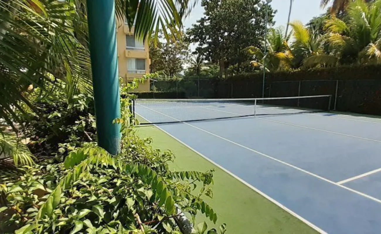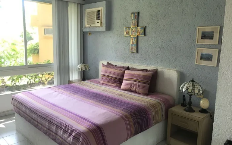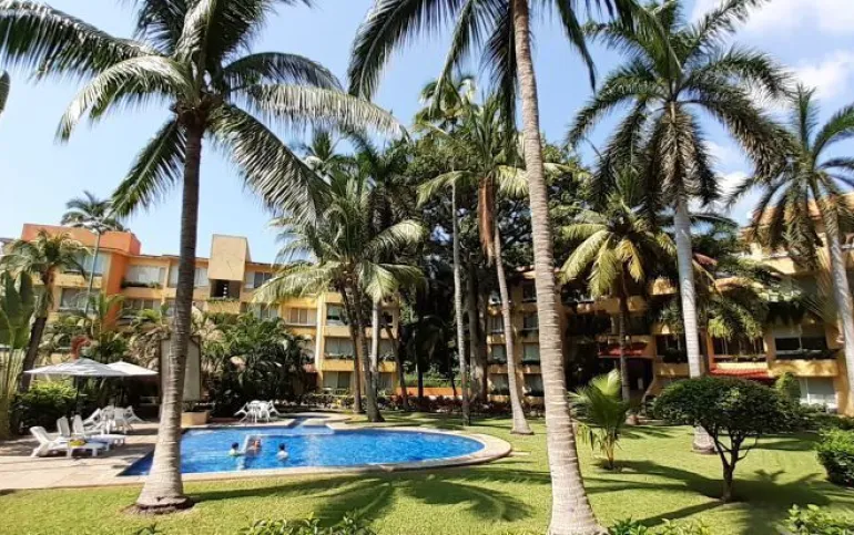 Vendo departamento en condominio con alberca, jardín y cancha de tenis, en Ixtapa, Zihuatanejo, Gro. Departamento de 120 m2, en primer piso. Estancia sala-comedor con A/A minisplit y vista a la alberca, cocina integral abierta con barra, recámara principal con closet, baño, A/A minisplit y vista a la alberca, al jardín y a la cancha de tenis, baño de visitas completo (compartido con la 1a. recámara junior), 1a. recámara junior con closet, baño, A/A minisplit y vista al jardín trasero, 2a. recámara junior con closet y vista a la alberca, cuarto de lavado integrado con baño completo, un cajón de estacionamiento independiente, en condominio de 28 departamentos, amplio jardín interior con espectaculares palmeras, hermosa alberca con chapoteadero, palapa con tarja, cancha de tenis, caseta de vigilancia con portero 24 horas. El condominio cuenta con impecable administración externa, servicio de limpieza y lavado de blancos. El condominio está ubicado a 4 minutos de los hoteles Barceló Ixtapa y Pacífica Resort Ixtapa, a 2 minutos del Campo de Golf Ixtapa, a 8 minutos de Marina Ixtapa y de Naútica Golf Course. Ixtapa se localiza a 15 km de Zihuatanejo. Ixtapa y Zihuatanejo se distinguen por sus hermosas playas (La Ropa, Las Gatas, Playa Quieta, El Palmar, La Isla, etc.). Ixtapa está ubicado en 2.5 horas de la hermosa ciudad de Morelia, Mich.