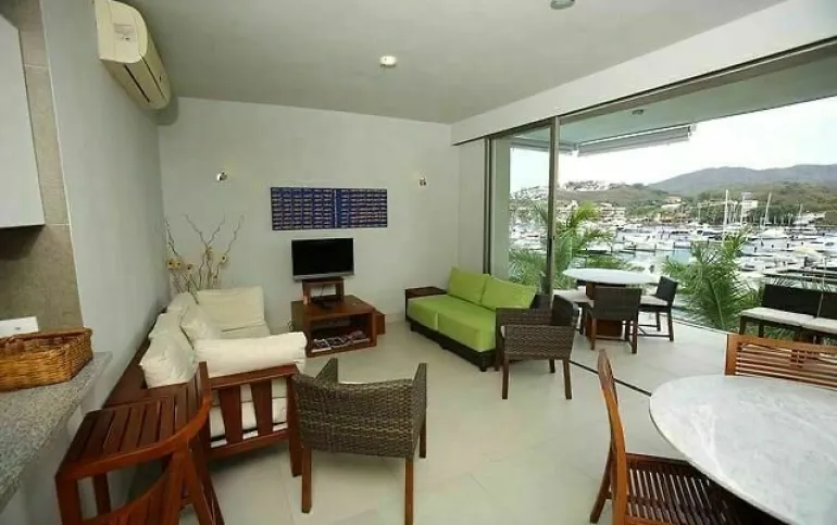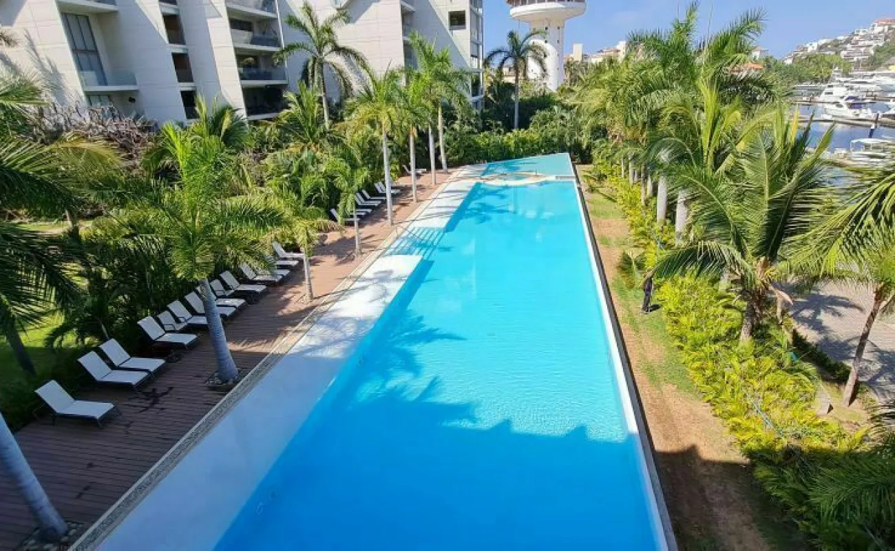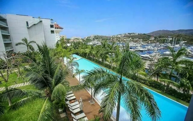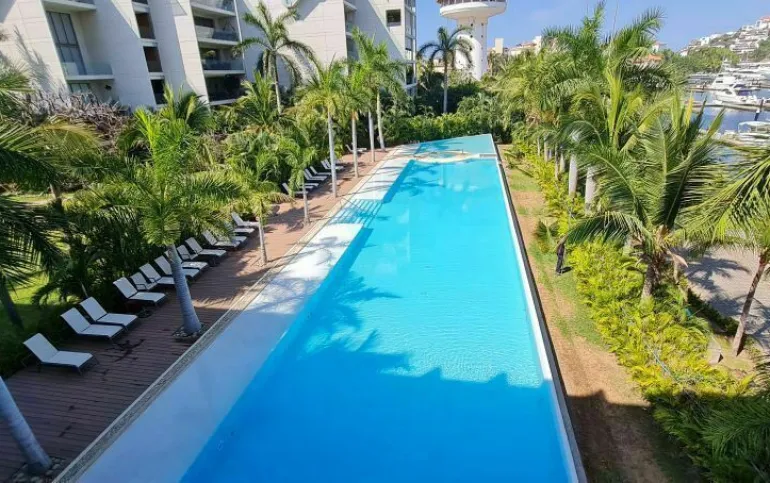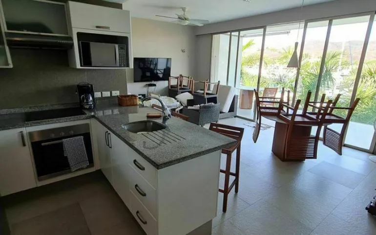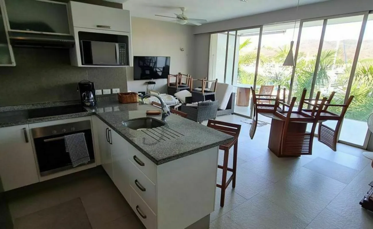 ¡Bienvenido al paraíso en Mareia, en Ixtapa, Zihuatanejo! Este es un departamento de lujo completamente amueblado con una superficie habitable de 140 m2, tres recámaras, dos baños, terraza con vista a la marina y a la alberca, garaje techado para 2 autos, y dos bodegas.