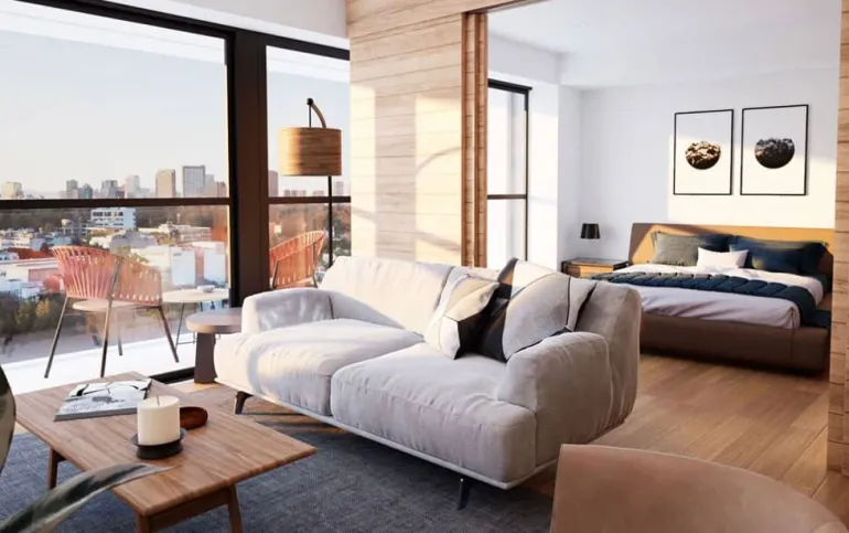 Departamentos desde 1 recámara con baño completo, terraza de 7.40 m2. 1 cajón de estacionamiento.