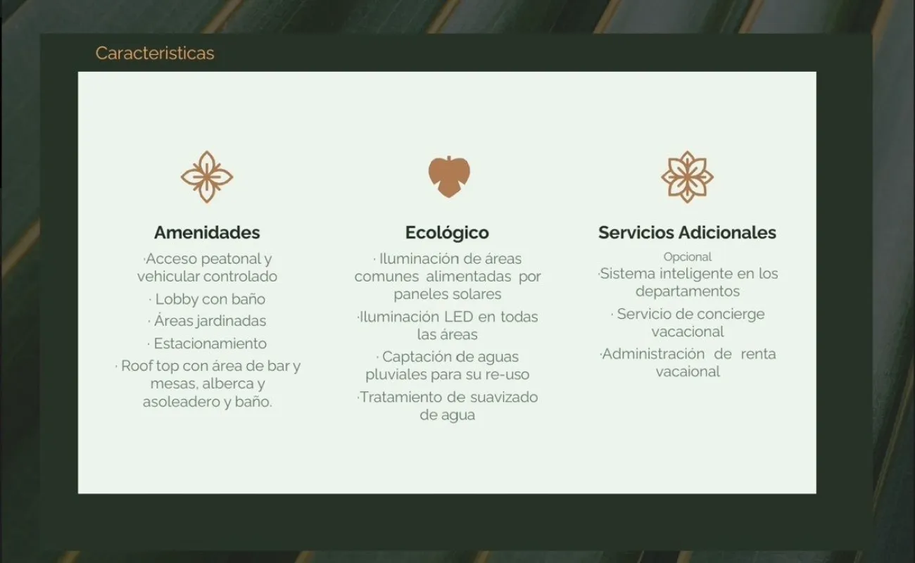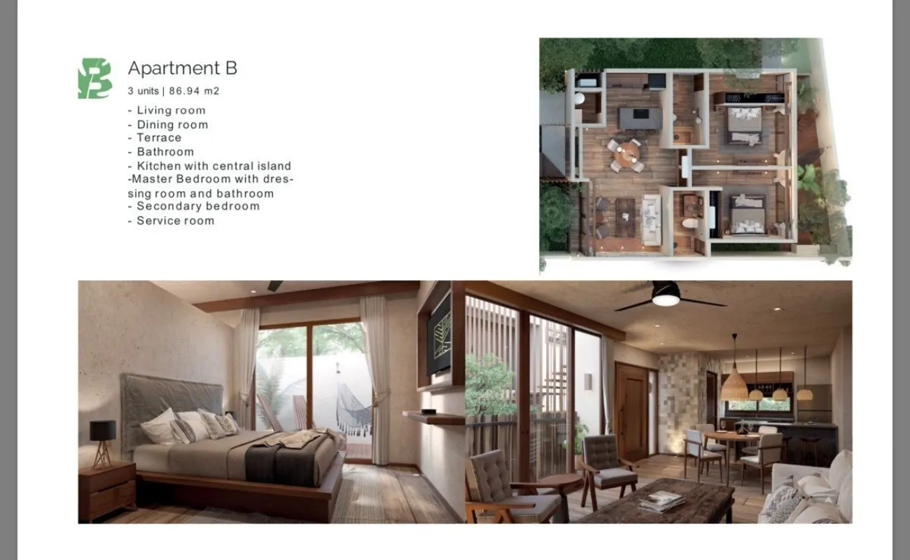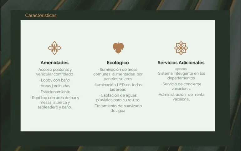 Desarrollo boutique, ecológico, diseñado para ser lo más autosuficiente posible y para valorar el entorno local, con solo 6 exclusivos departamentos dentro de una de las zonas residenciales con mayor crecimiento y desarrollo de Tulum, a unos minutos de la playa, cerca de restaurantes, áreas comerciales y atracciones turísticas, entrega inmediata.