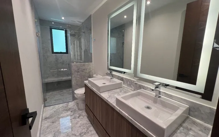 Bienvenido a tu nuevo departamento en Lomas de Tecamachalco,(de ciento ochenta y nueve punto sesenta y nueve metros cuadrados habitables + ocho punto once metros cuadrados de balcón + cincuenta y dos punto noventa y seis metros cuadrados de roof Garden privado) una propiedad de lujo con acabados premium que harán que te enamores a primera vista. Con tres amplias recámaras con un gran vestidor, cada una con su propio baño completo (La recámara principal cuenta con doble lavabo), un medio baño para visitas, cuarto de servicio y área de lavado, balcón, este departamento cuenta con todo lo que necesitas para vivir cómodamente y con estilo. Además, cuenta con dos lugares de estacionamiento independientes, un gimnasio completamente equipado, salón de fiestas, elevador, bodega y lo mejor de todo, un roof garden privado para disfrutar de las vistas panorámicas.
