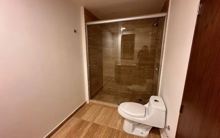 Sala, comedor con salida al balcón. Cocina abierta integrada al comedor; medio baño.