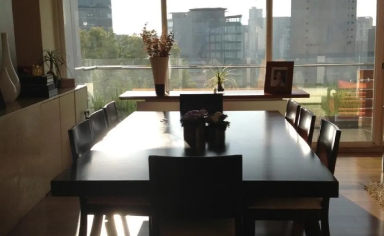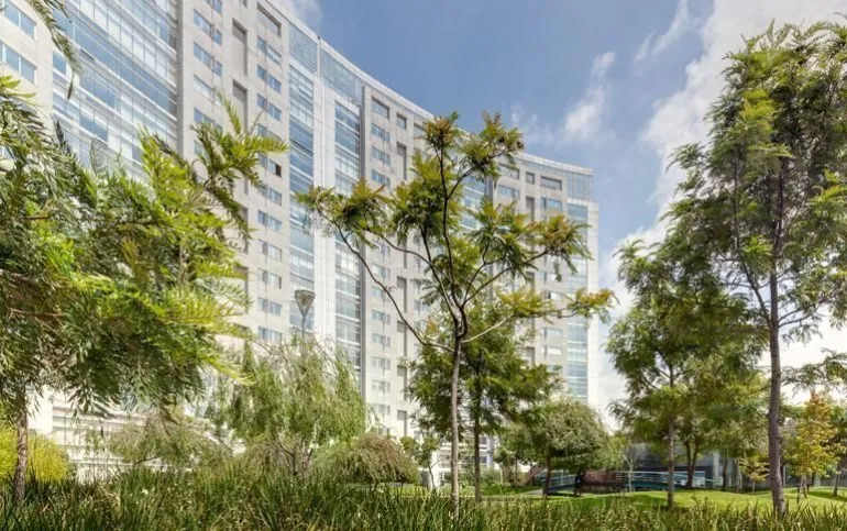 Amenidades: Casa club muy completa, alberca techada, jacuzzi y chapoteadero al aire libre, amplios jardines con juegos infantiles, canchita de futbol y de básquet Ball, zona de asadores, cancha de tenis, Gimnasio, salón de yoga, SPA con jacuzzi y vapor, salón de adultos, salón de eventos, salón de niños, squash, cine, jardín de perros, parque interno con lago.