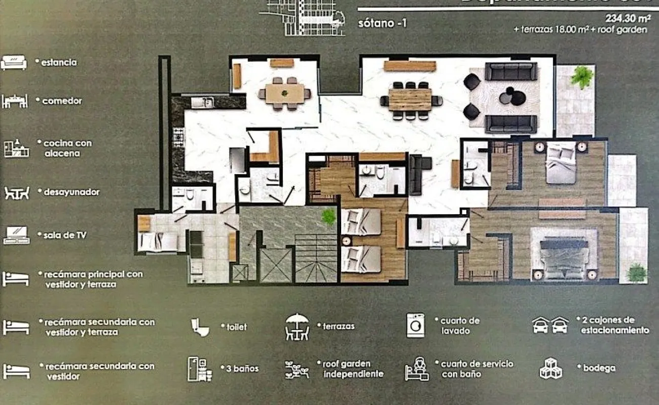 Departamentos en venta a estrenar con una superficie desde 200 m² hasta 250 m², solo 8 departamentos, todos con vista exterior