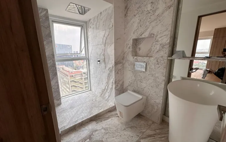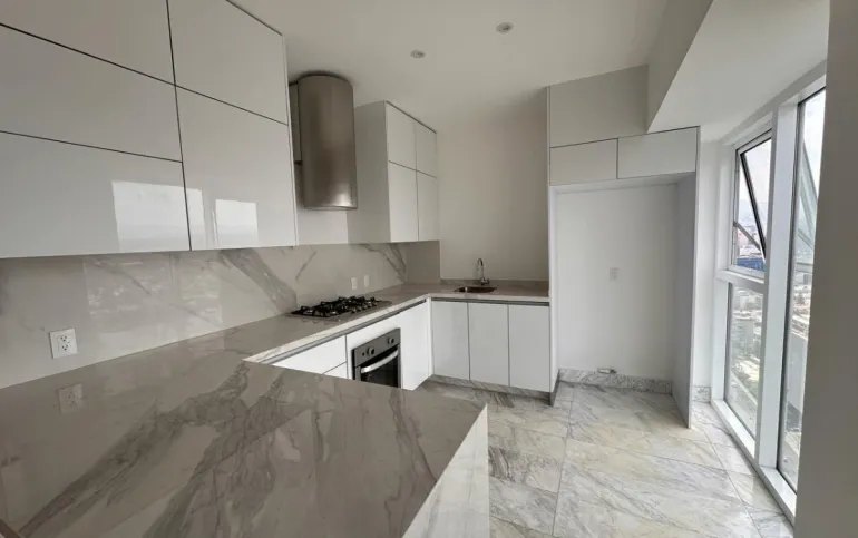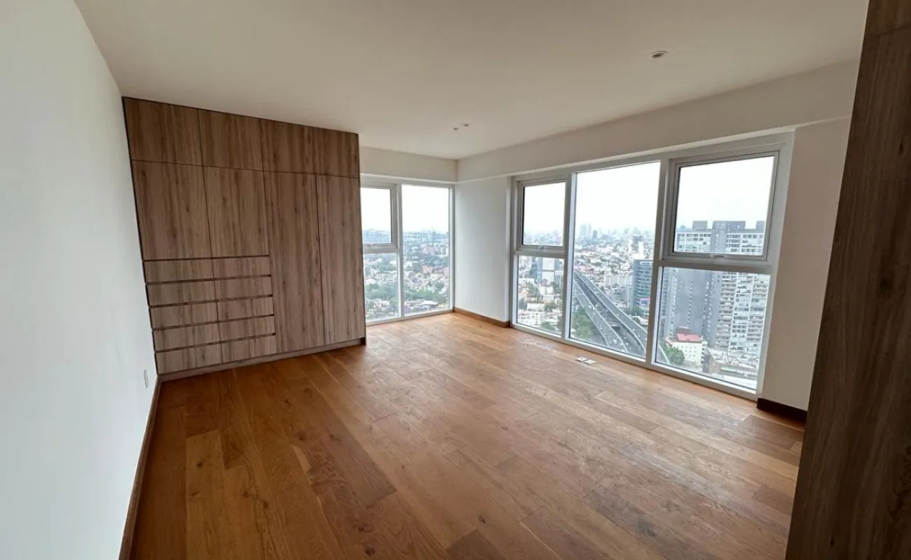 Departamento de 164 m2 con muy bonitas vistas desde todo el departamento. Consta de 3 recámaras, 3 baños completos; cocina abierta, cuarto de servicio.