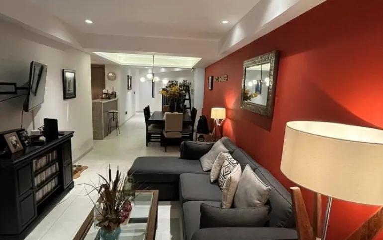 Departamento en venta se encuentra en el Piso 5, interior, superficie habitable 113 m² consta de: Dos recamaras, La recamara principal tiene closet muy amplio, baño completo con cancel de vidrio templado, y terraza que comparte con la segunda recamara con una formidable vista. Segunda Recamara con closet de piso a techo, segundo baño completo también con cancel de vidrio templado, acabados de lujo, Sala, comedor, amplia con excelente distribución, ventilada e iluminada, cocina integral abierta con barra de granito, cuarto de lavado integrado, balcón muy amplio con excelente vista, bodega en el sótano y 2 lugares de estacionamiento fijos, techados e independientes. El condominio tiene una edad de 4 años, Vigilancia 24/7, Circuito Cerrado, Elevador, Roof Garden común y Roof Garden común para mascotas, Mantenimiento $3,650.00 y son 27 departamentos. La ubicación es entre las calles de Colorado y Dakota a una calle de insurgentes sur a 2 calles de World Trade Center. Cuenta con acceso vehicular por las calles de Ohio y Colorado. Informes al 55-85332148.