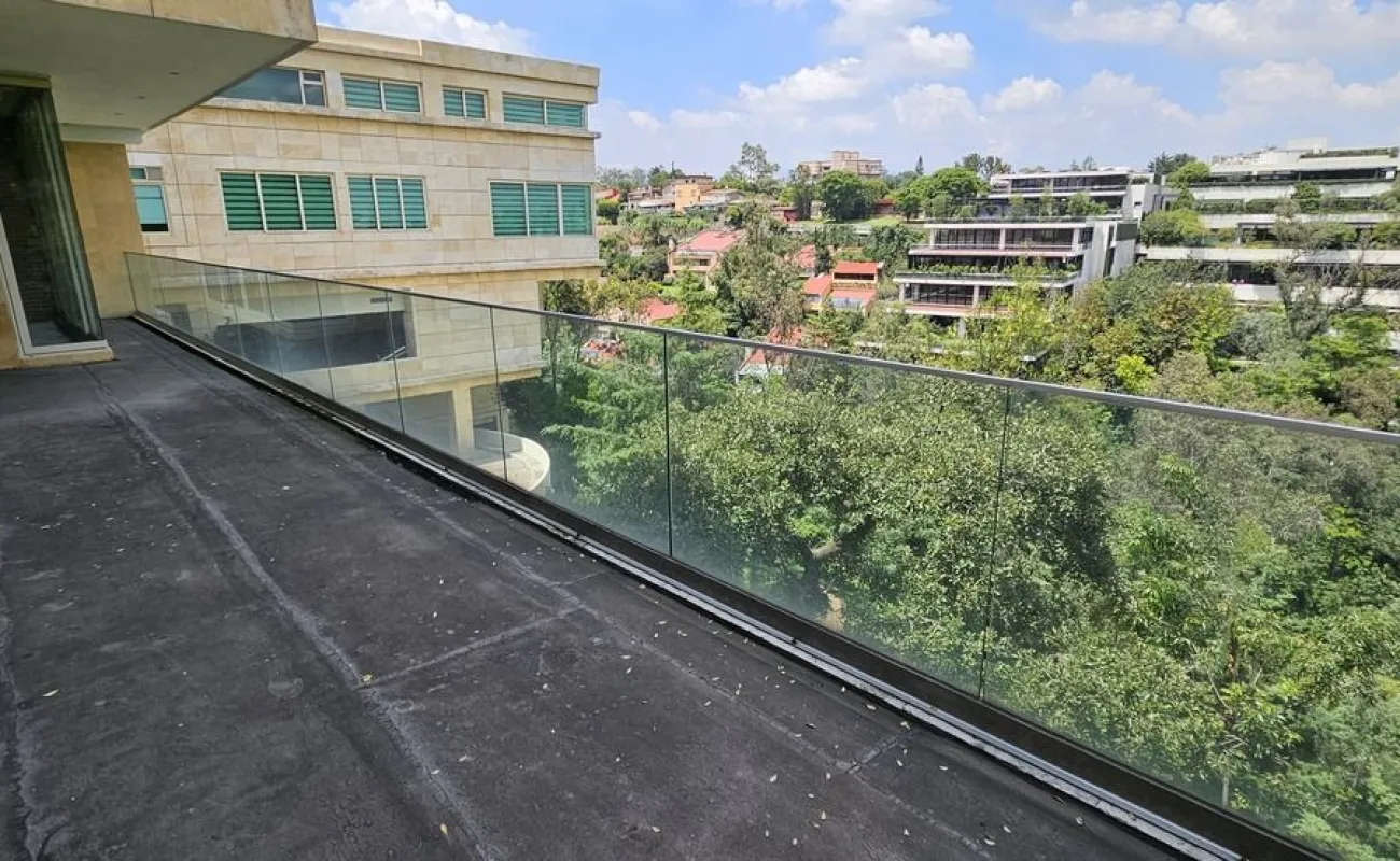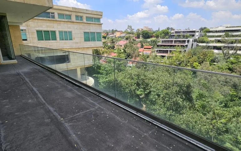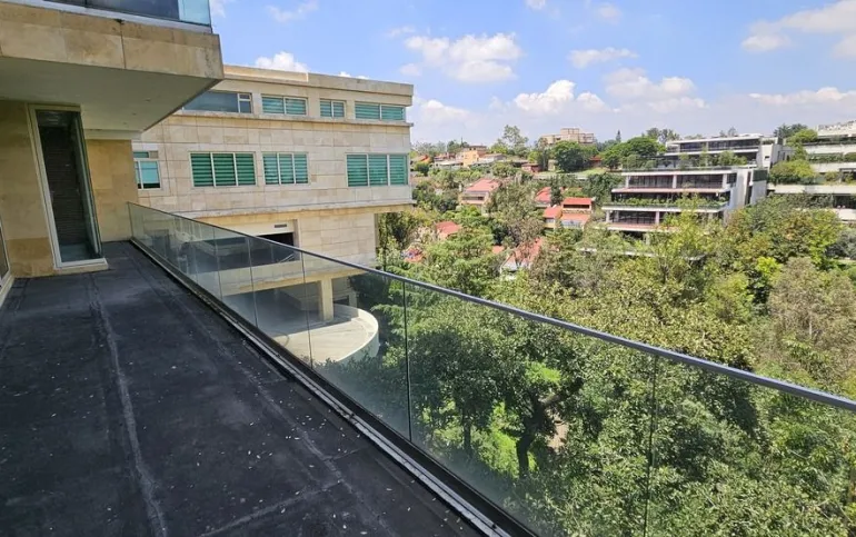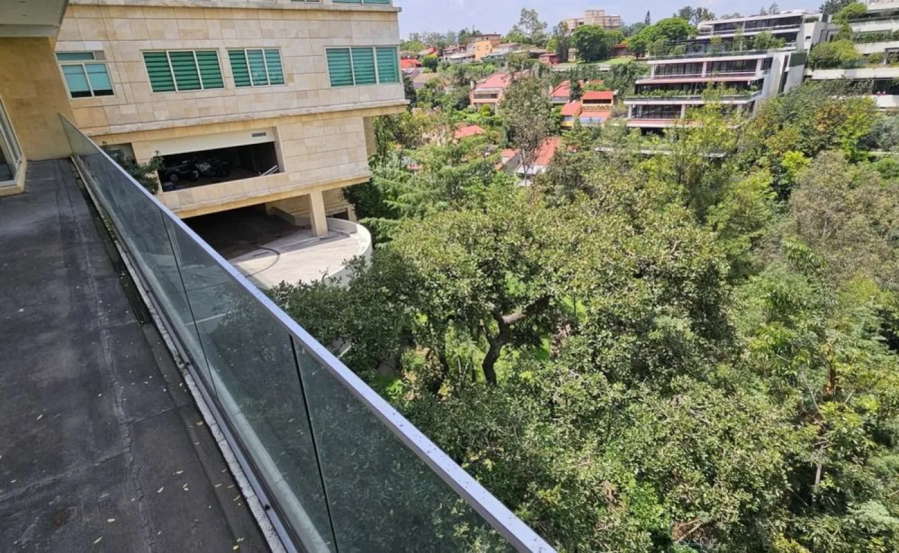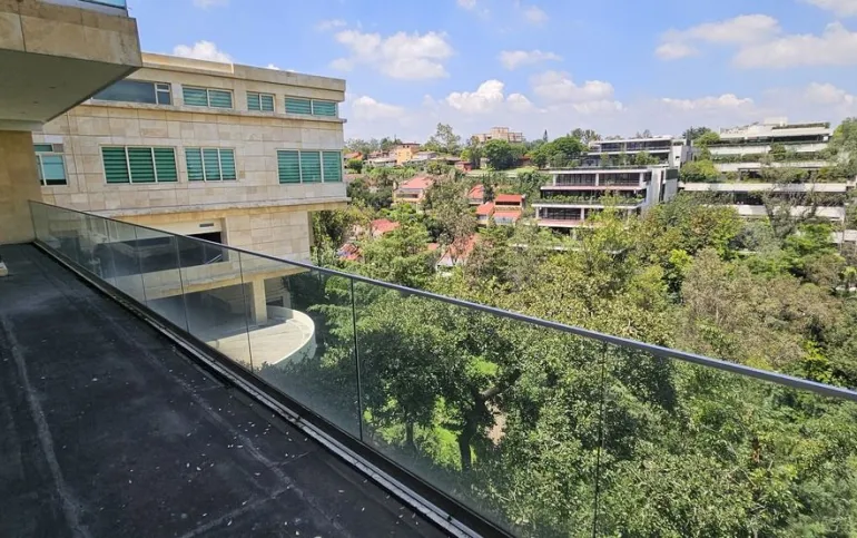 Estrene departamento de 575 m2 habitables en un solo nivel + 170 m2 de jardín privado + 70 m2 de balcones, en condominio residencial de lujo de solo 8 exclusivos departamentos en 7,050 m2 de terreno y con caseta de vigilancia y seguridad privada para brindarte tranquilidad en todo momento. Diseñado por Grupo Girault Arquitectos. El departamento consta de 4 recámaras, 4 baños completos, sala, comedor, cocina integral, garaje para 6 camionetas. El departamento consta de 4 recámaras, 4 baños completos, sala, comedor, cocina integral, garaje para 6 camionetas. El departamento, la terraza y el estacionamiento se localizan en el mismo nivel. Los espacios exteriores (jardín, terraza y balcón), con una vista impresionante de la naturaleza, son perfectos para compartir y disfrutar con familiares y amigos.