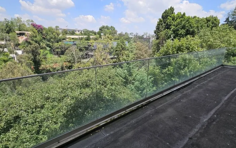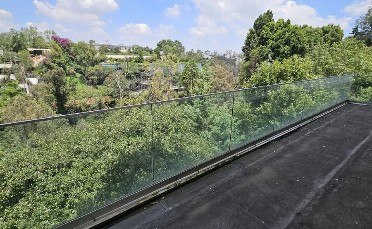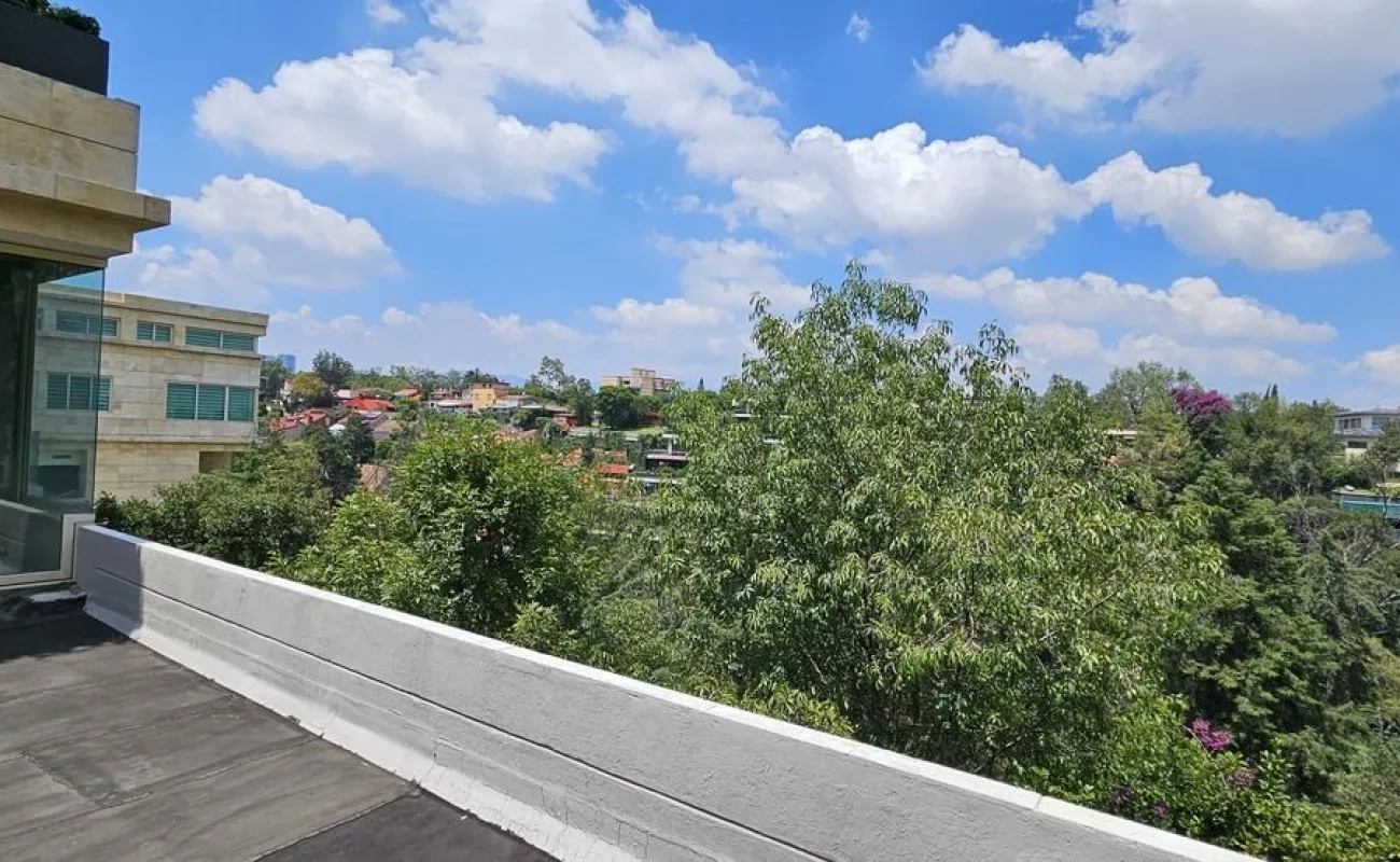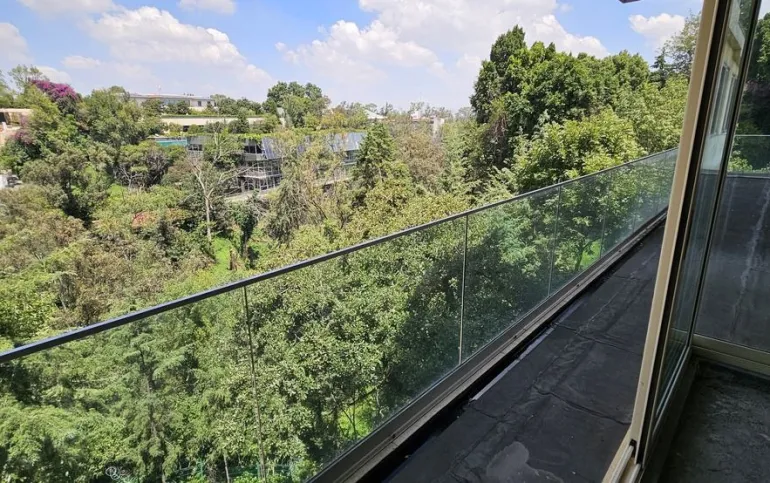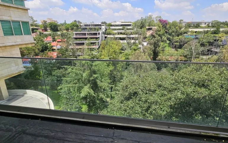 Estrene departamento de 575 m2 habitables en un solo nivel + 170 m2 de jardín privado + 70 m2 de balcones, en condominio residencial de lujo de solo 8 exclusivos departamentos en 7,050 m2 de terreno y con caseta de vigilancia y seguridad privada para brindarte tranquilidad en todo momento. Diseñado por Grupo Girault Arquitectos. El departamento consta de 4 recámaras, 4 baños completos, sala, comedor, cocina integral, garaje para 6 camionetas. El departamento consta de 4 recámaras, 4 baños completos, sala, comedor, cocina integral, garaje para 6 camionetas. El departamento, la terraza y el estacionamiento se localizan en el mismo nivel. Los espacios exteriores (jardín, terraza y balcón), con una vista impresionante de la naturaleza, son perfectos para compartir y disfrutar con familiares y amigos.