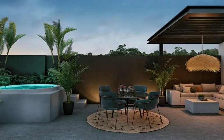 Cuenta con 2 recámaras, 2 baños, balcón, 1 cajón de estacionamiento y rooftop privado con jacuzzi, ideal para disfrutar la esencia del Caribe.