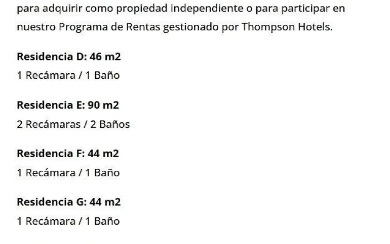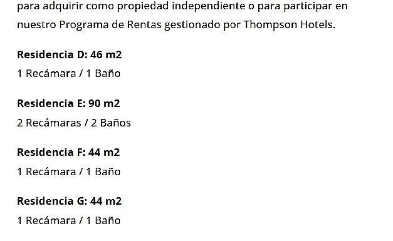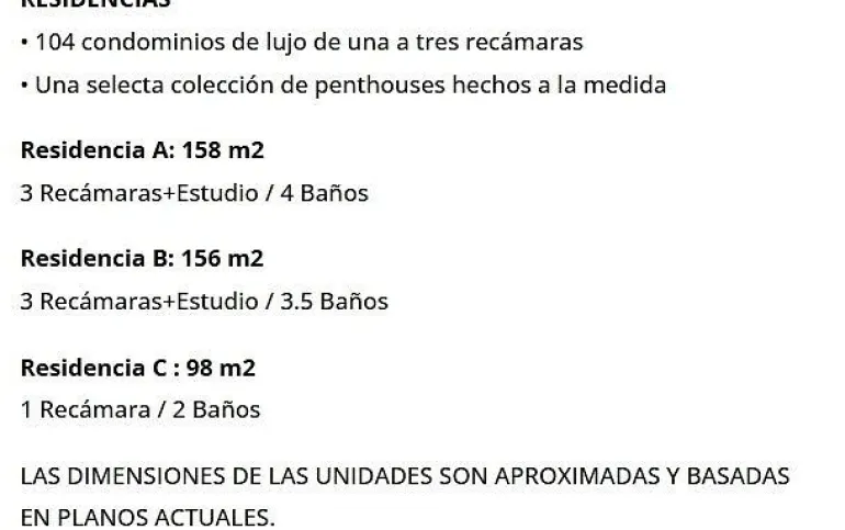 -VARIEDAD DE RESIDENCIAS: Desde condominios de lujo de una a cuatro habitaciones hasta una colección limitada de Penthouses personalizados.