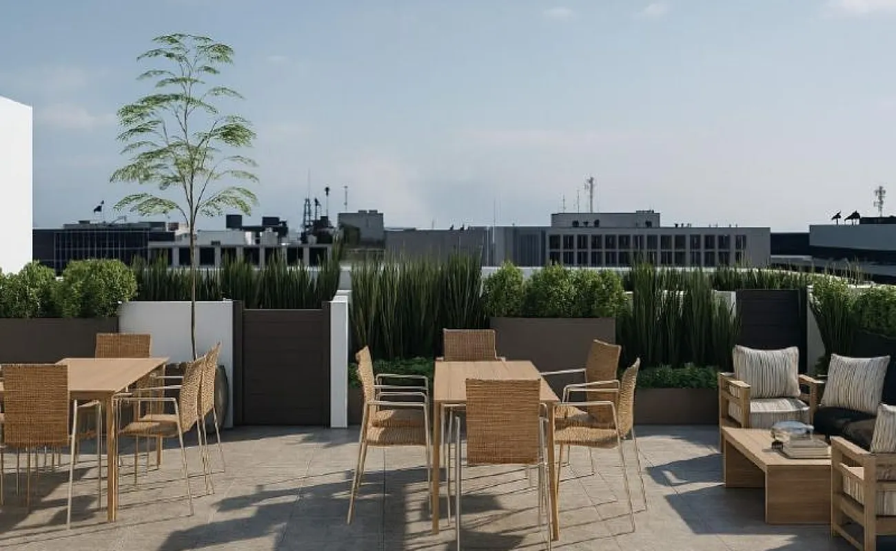 El proyecto está conformado por 26 departamentos y 4 penthouses con roof garden privado, diseñados bajo un concepto moderno minimalista que prioriza la iluminación natural, amplitud y funcionalidad de los espacios.