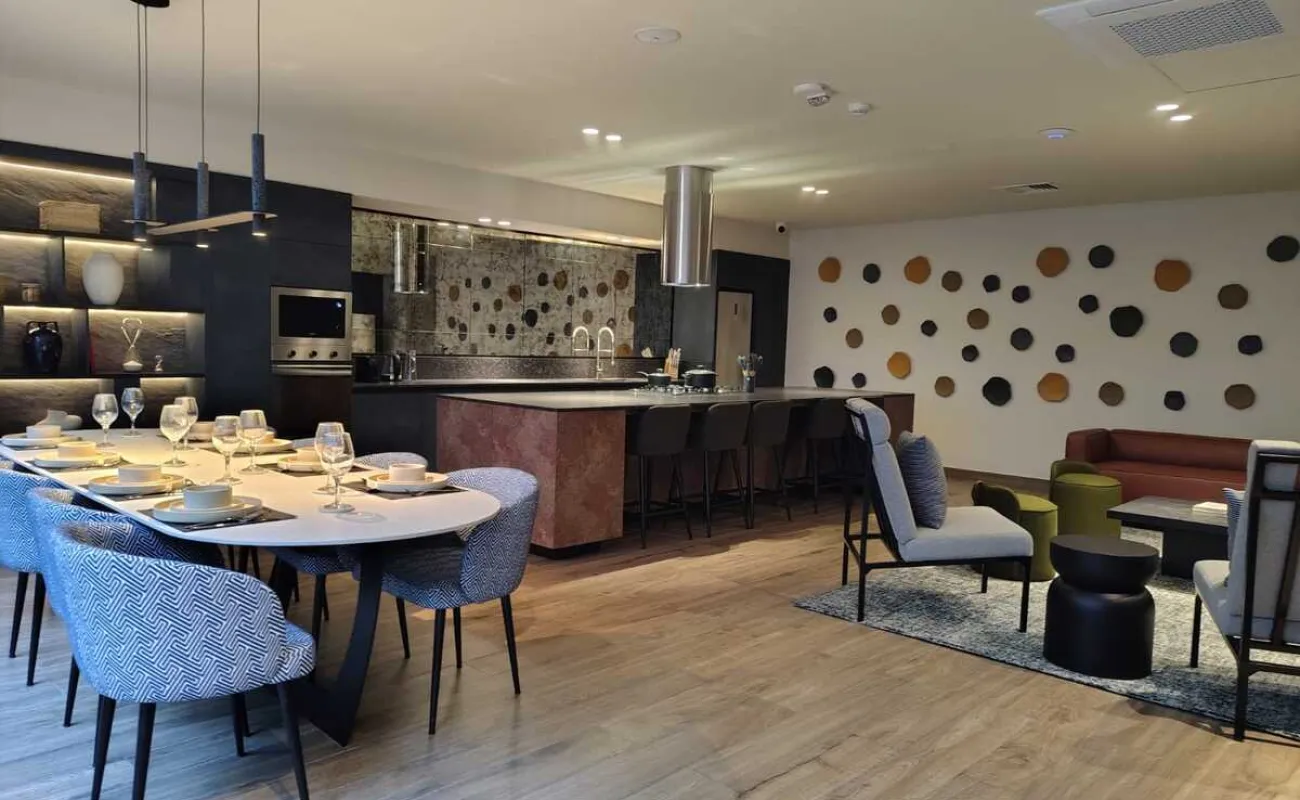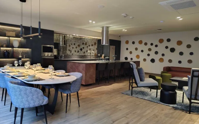 ❖ Área de Co-working 24 hrs, sala de juntas, espacio tipo auditorio (Se permiten 2 invitados por departamento)
