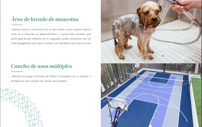 - Área de lavado de mascotas para mantener limpios a tus amigos peludos